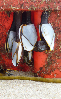 Zowel de Geplooide eendenmossels als de Ruwe eendenmossels waren dood.