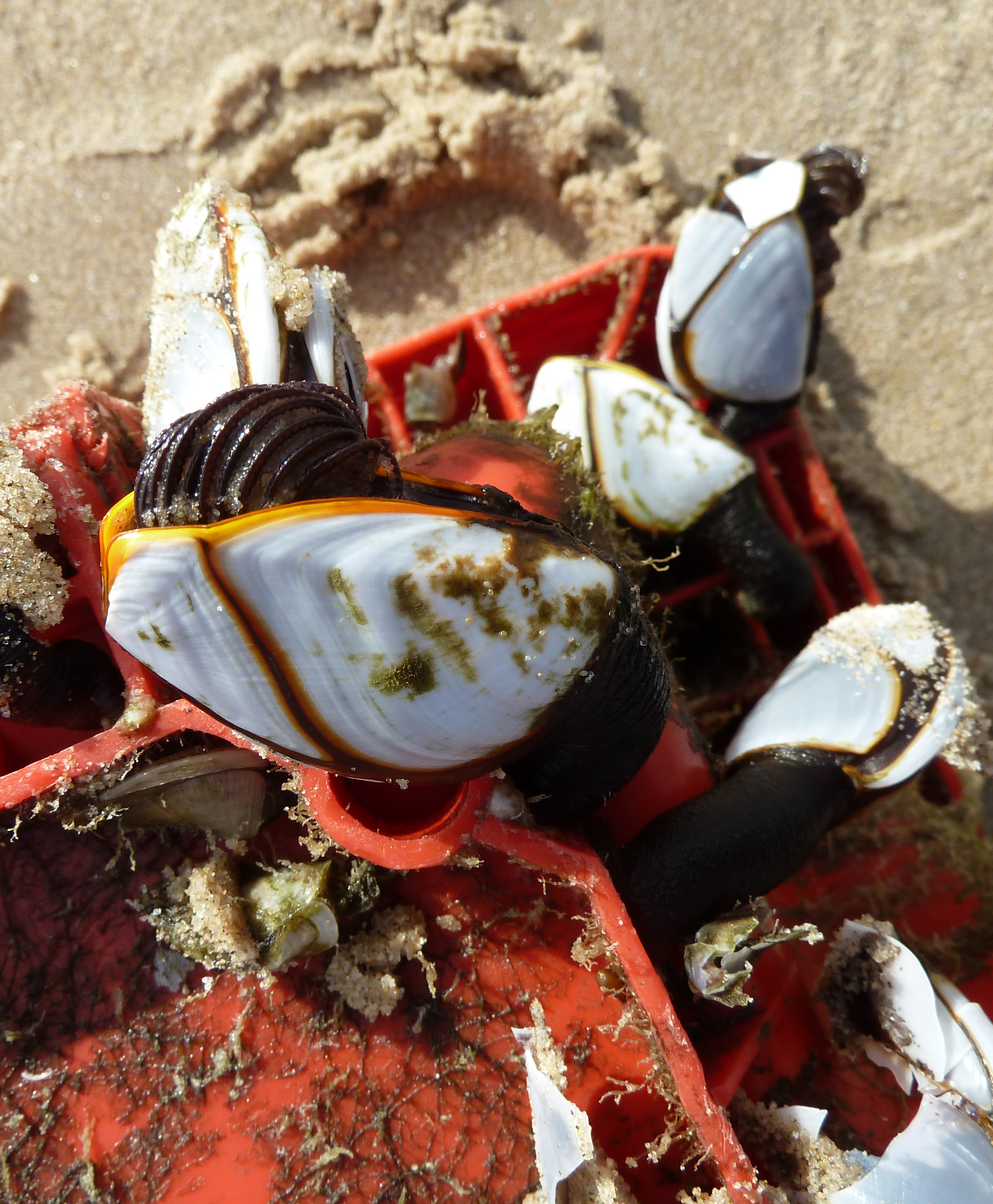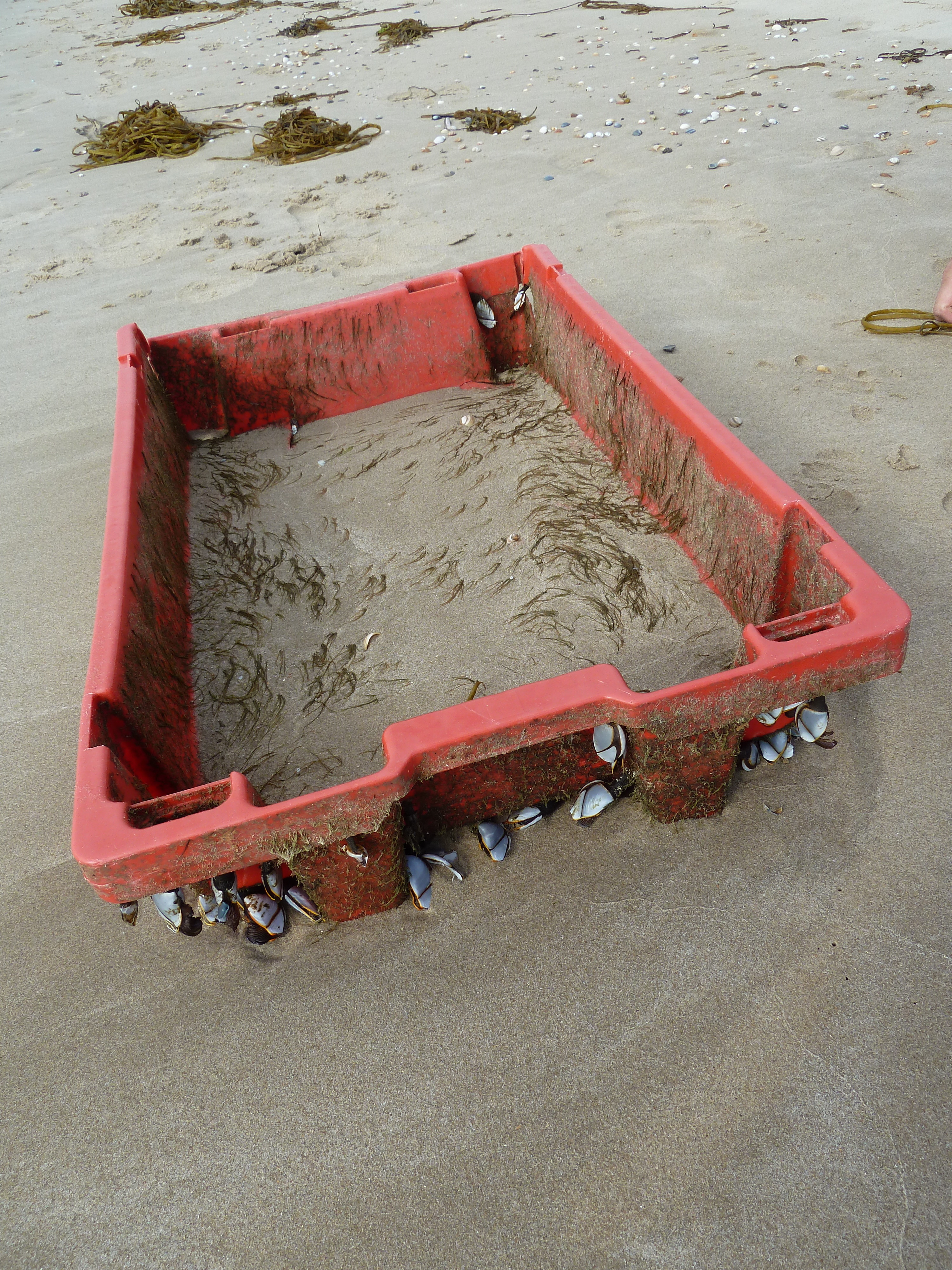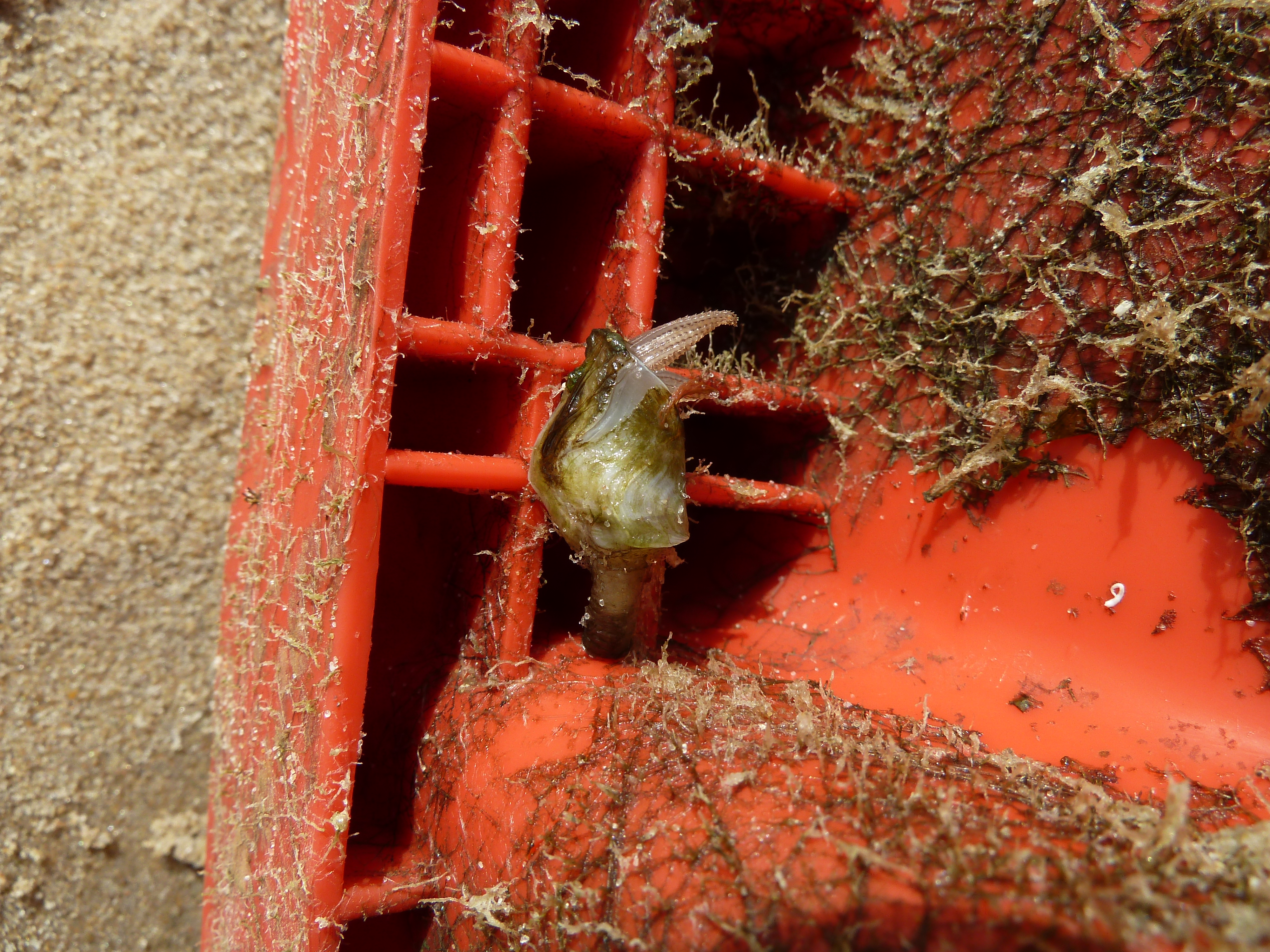 en er waren zelfs exemplaren van de Ruwe eendenmossel die zich op dit krat gevestigd hadden.