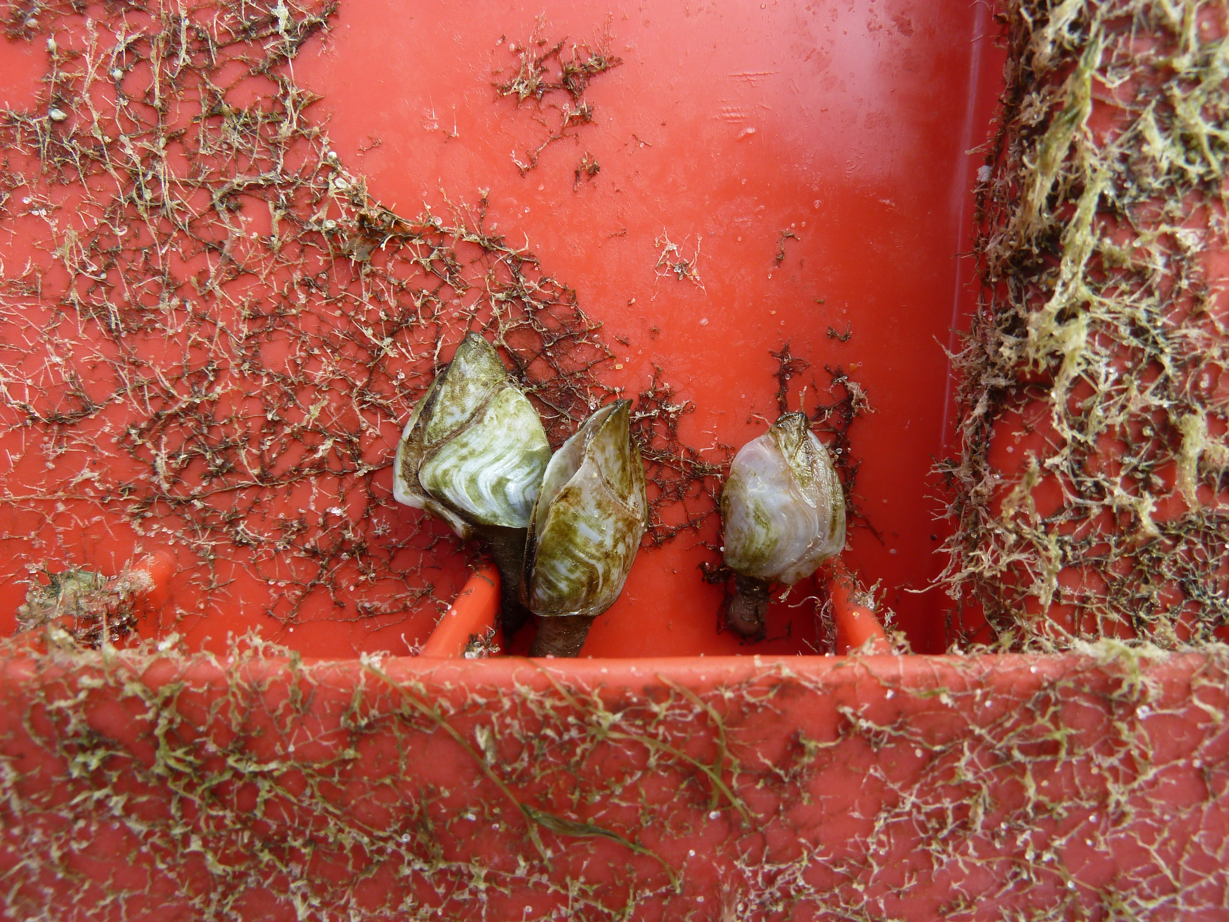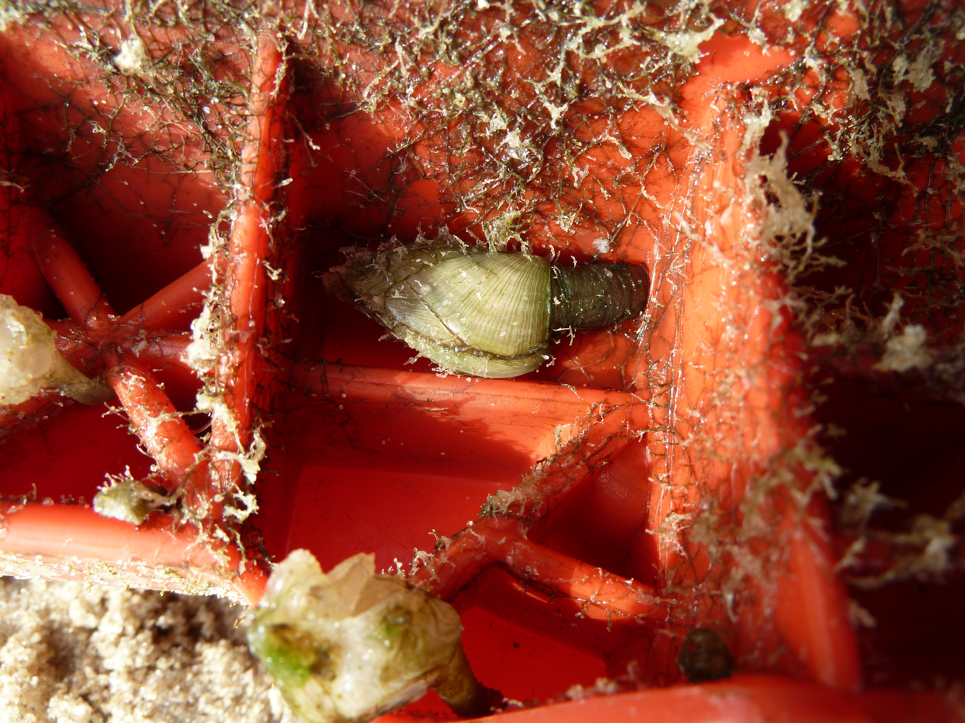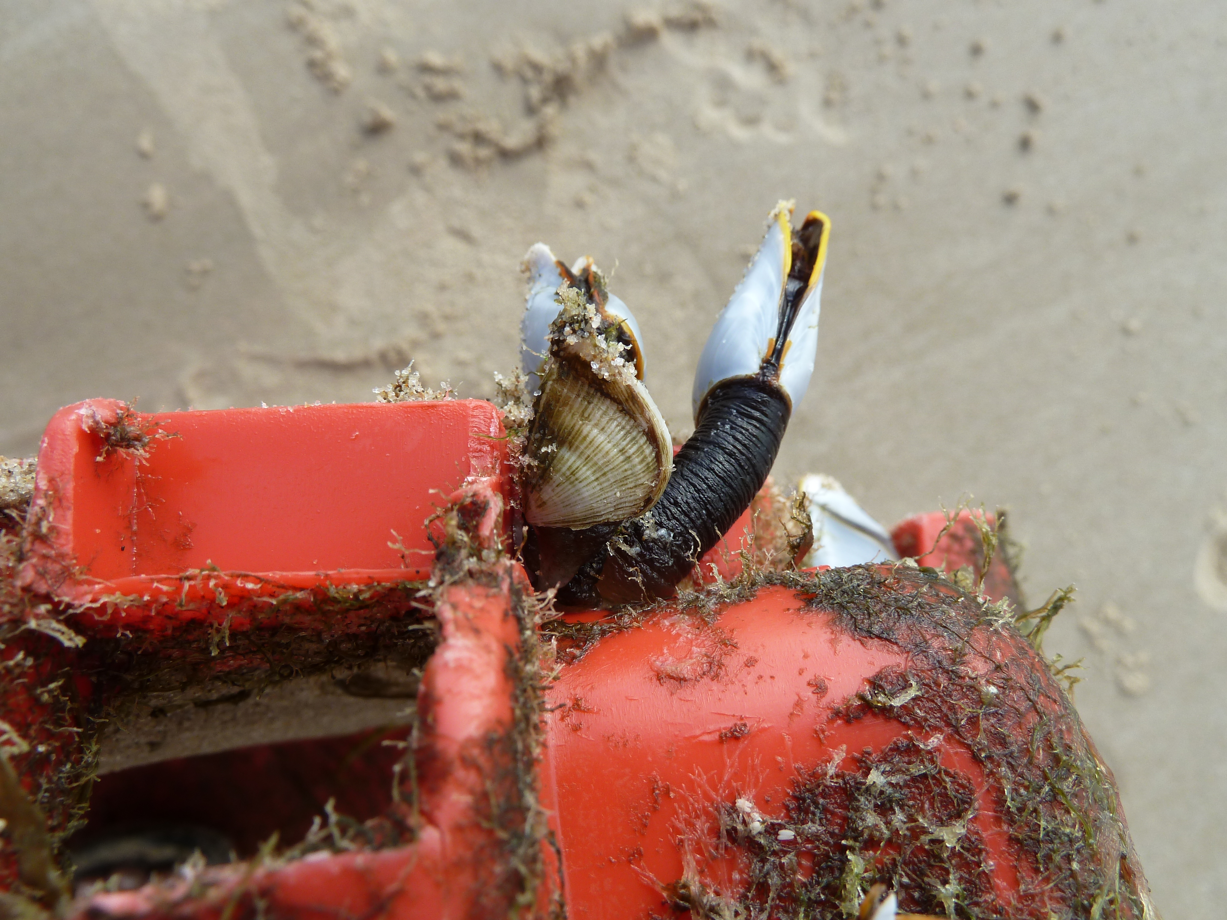 en er waren zelfs exemplaren van de Ruwe eendenmossel die zich op dit krat gevestigd hadden.