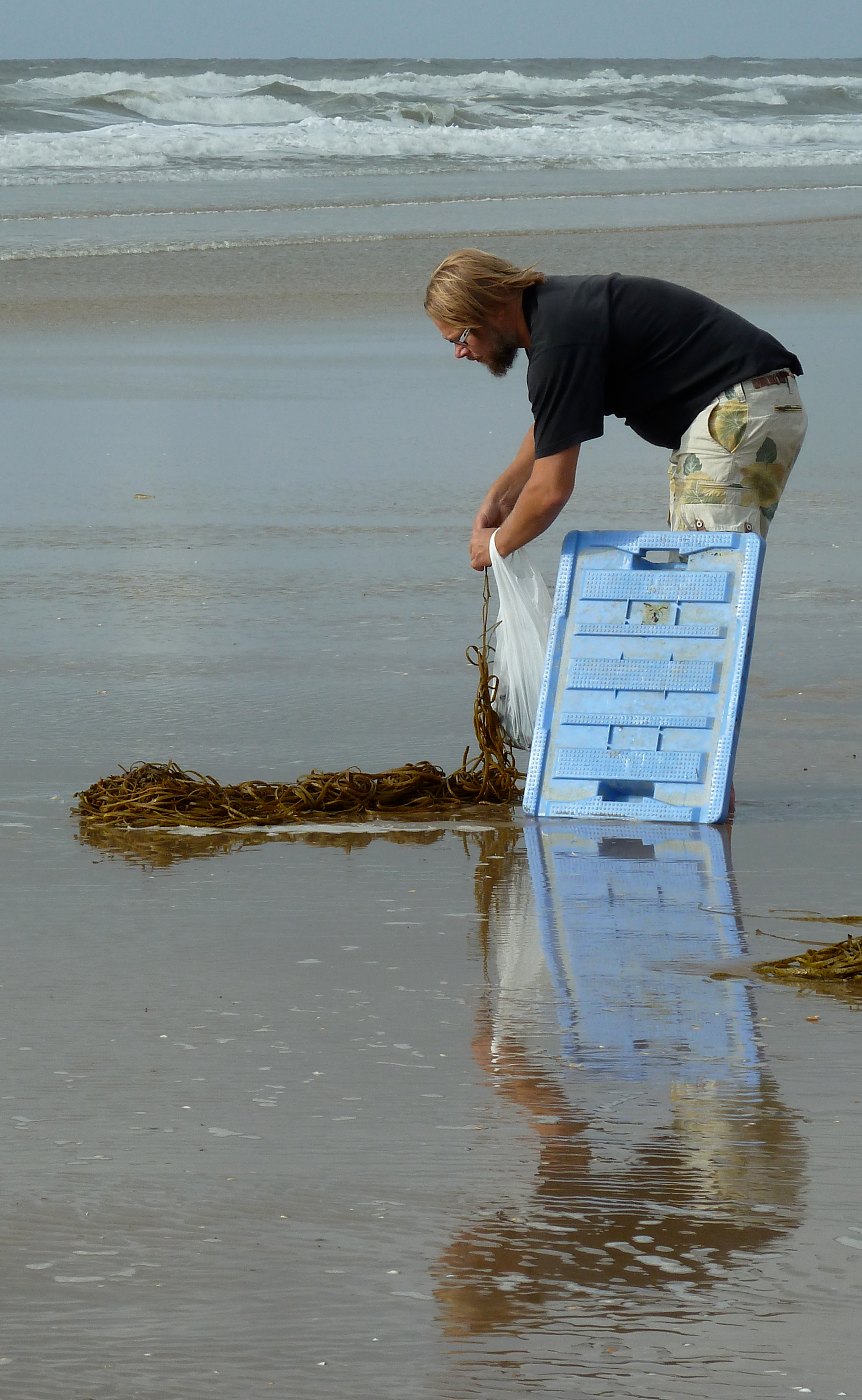 De troep (alles dat niet natuurlijk is) op het strand bestond voornamelijk uit schoenen en slippers. Van het natuurlijke materiaal waren het vooral de enorme hoeveelheden zeeschuim die opvielen. Zo veel mogelijk werden de aangespoelde zaken nagekeken op bijzondere aanhangsels, maar telkens waren het voornamelijk Grote eendenmossels die zich hadden gehecht aan schoenen en ander plastic.