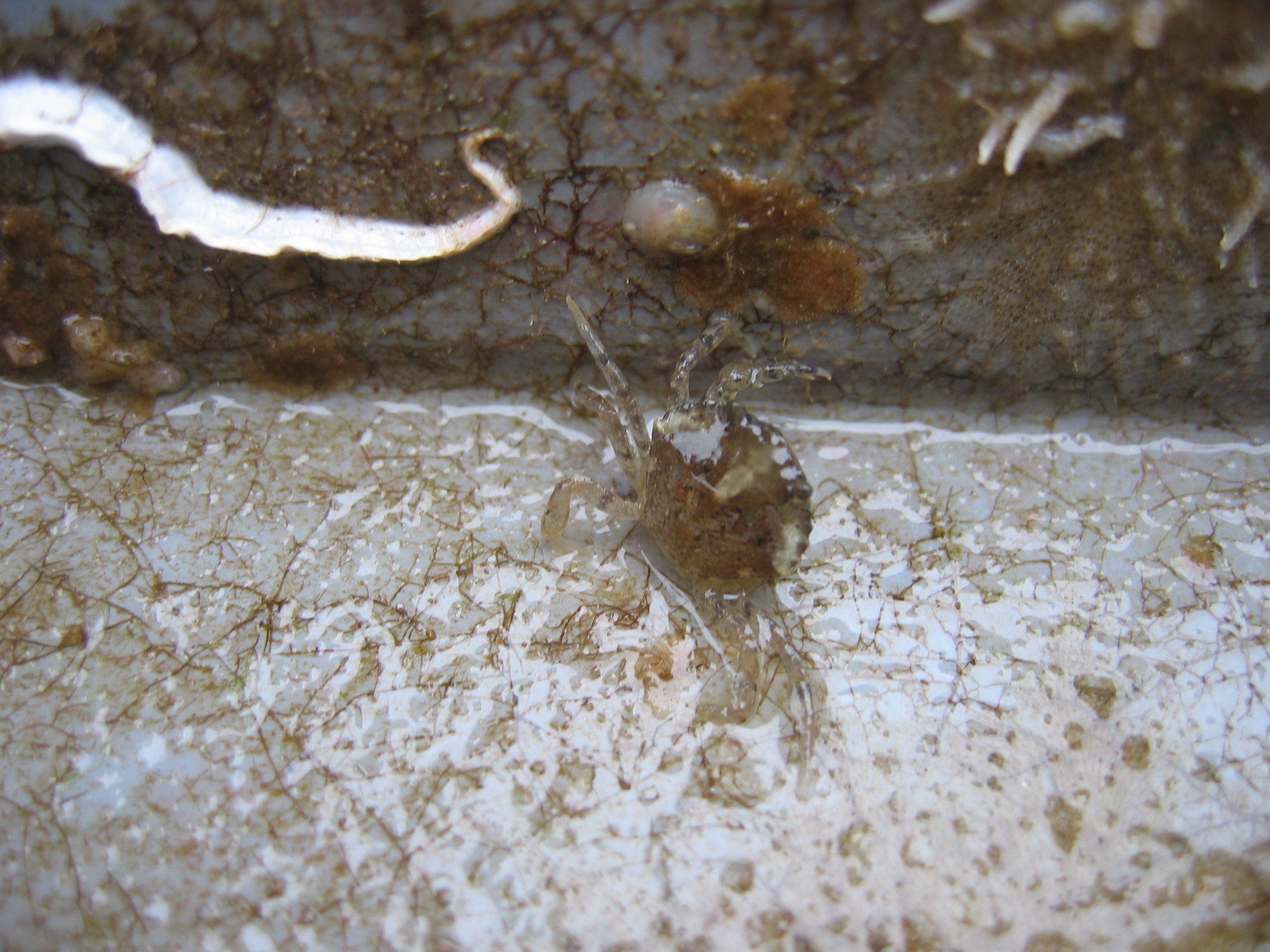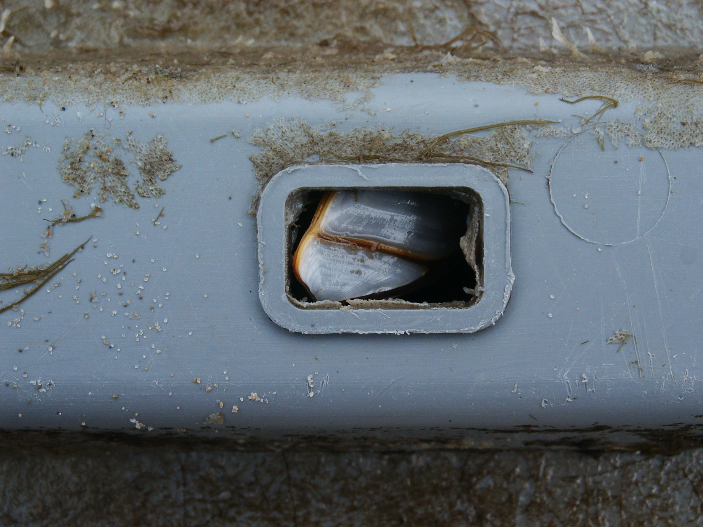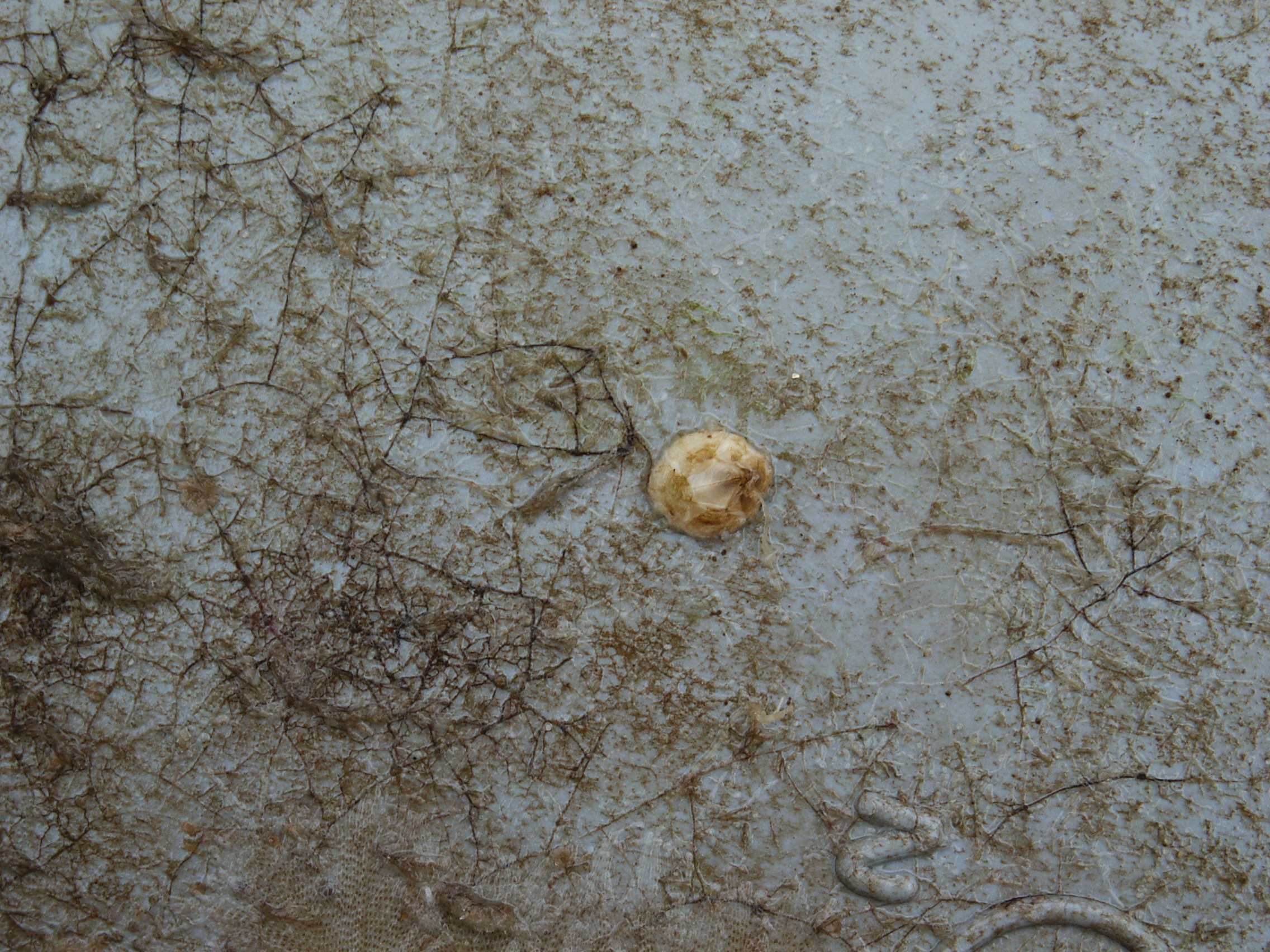De meest bijzondere vondst echter was een plastic plaat waar een nog levende wijde mantel op lag. Zuiver uit nieuwsgierigheid hebben we de plaat meegenomen om hem te onderzoeken, daar er ook dekschalen en eendemossels op zaten.
