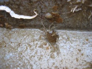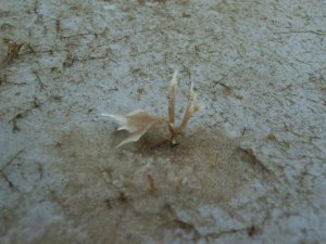 Het kortstondig kloppen op de plaat leverde tot onze verbazing 14 jeugdige nog levende wijde mantels op in allerlei kleuren. De mantels zaten in de "pijpen" die de rand van de plaat vormden.
