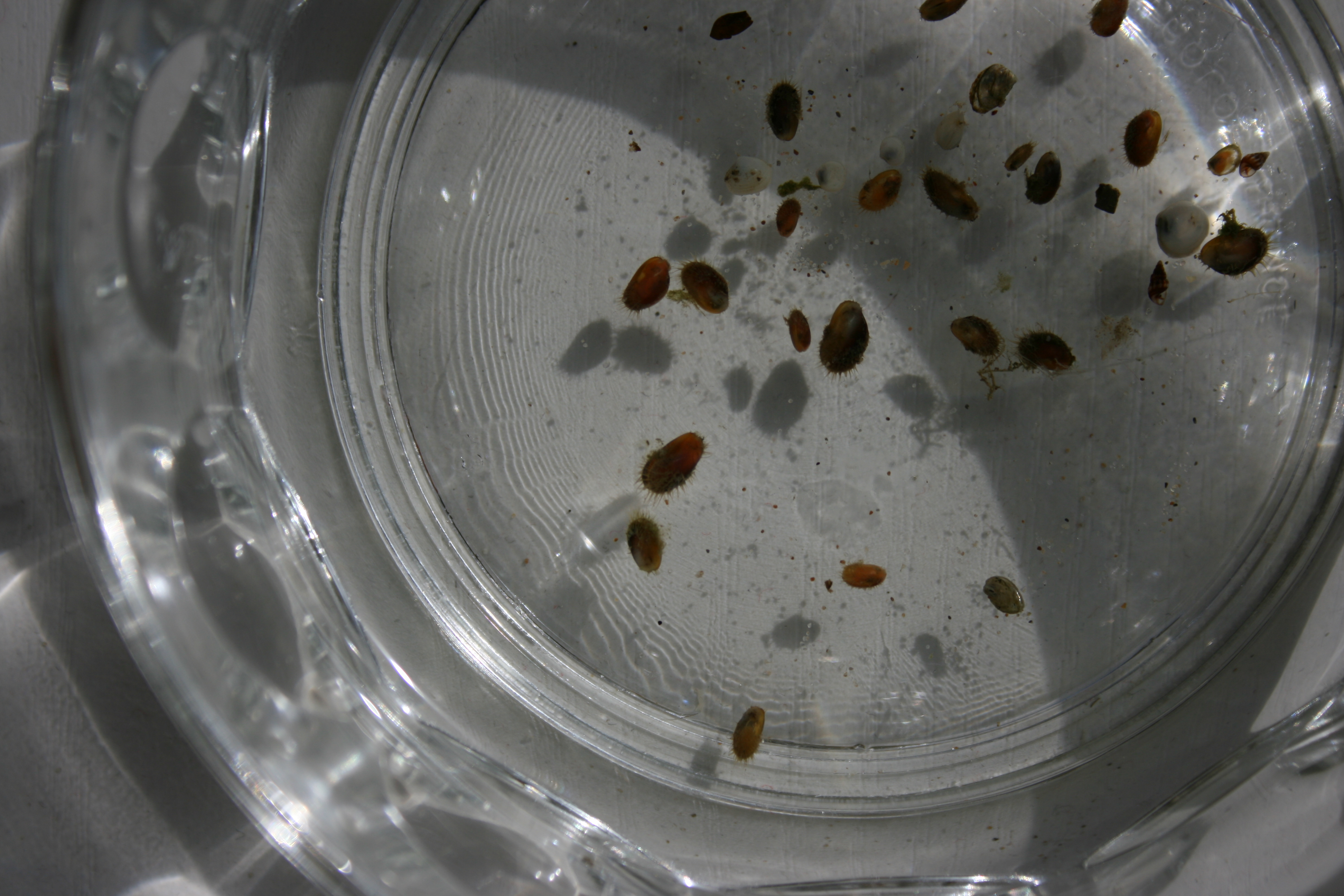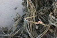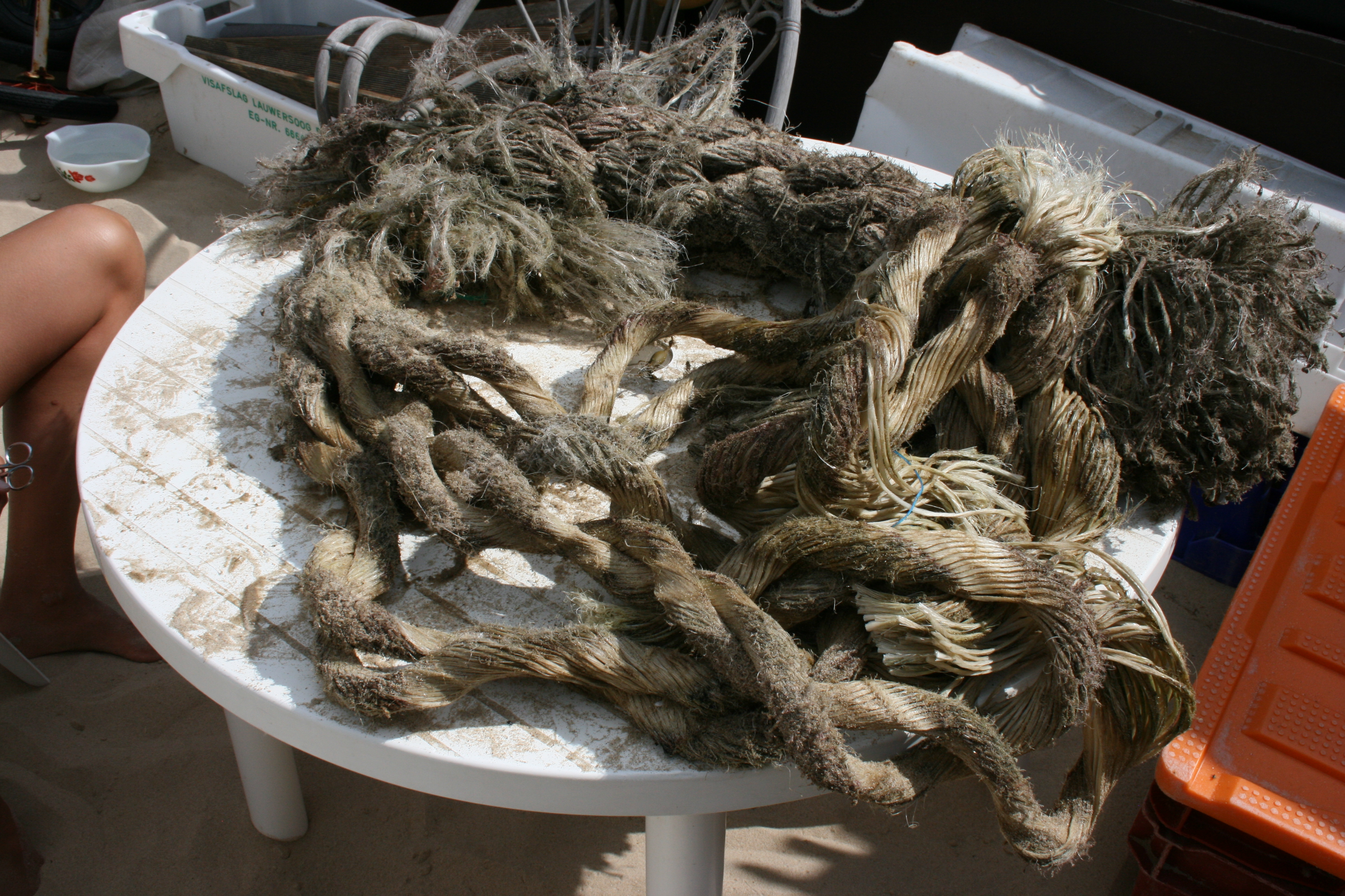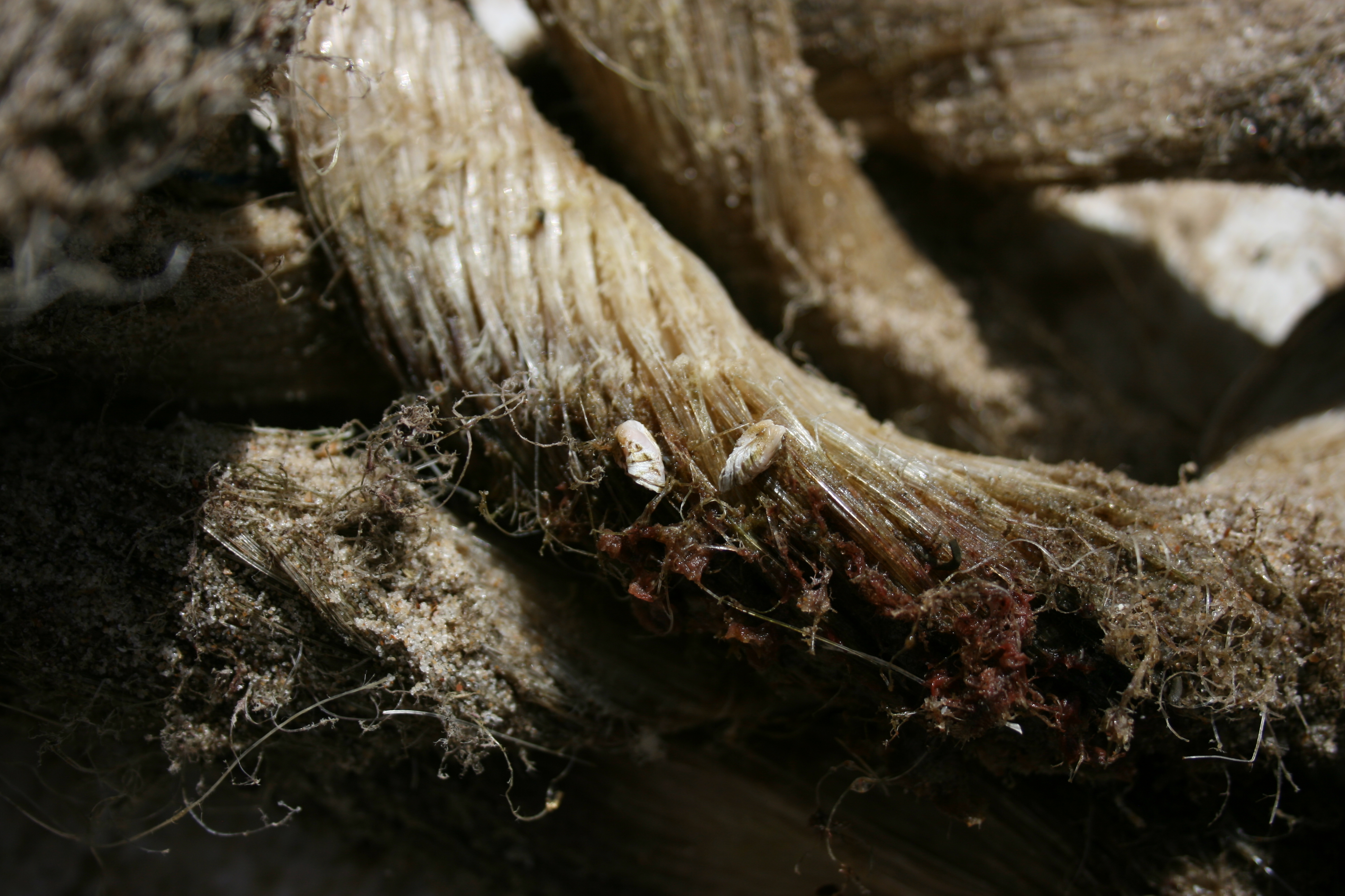Het touw nader onderzoekend bleken er vele noordse rotsboorders in en op te zitten.