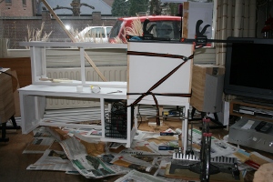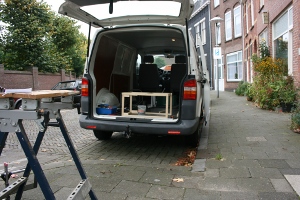 Om een beetje op te kunnen schieten heb ik op 24 oktober een dagje vrij genomen. Anneke was met de bus weg, dus alles vanaf de ontwerptekening gedaan. Toen de bus weer terug was, bleek het allemaal te passen. Schouderklopje voor de ontwerptekenaar en bouwer (Dennis).