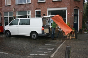Met sneeuw die niet echt wil blijven liggen hebben we de nieuwe kentekenplaten opgehaald op 15 maart en gezorgd dat we daarmee ook in Utrecht, nou ja, in onze wijk, mogen parkeren.