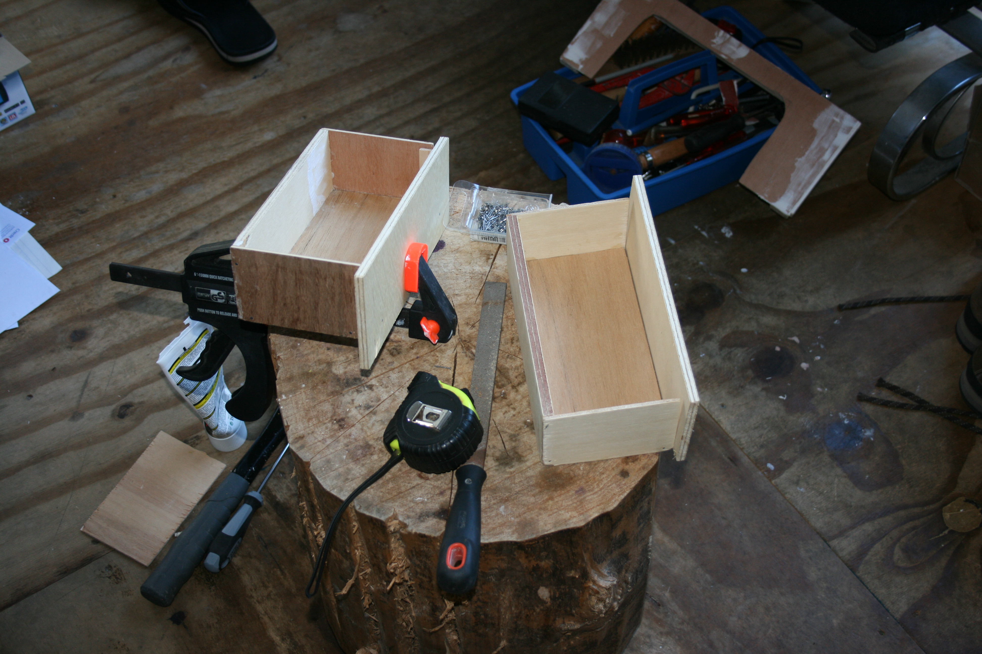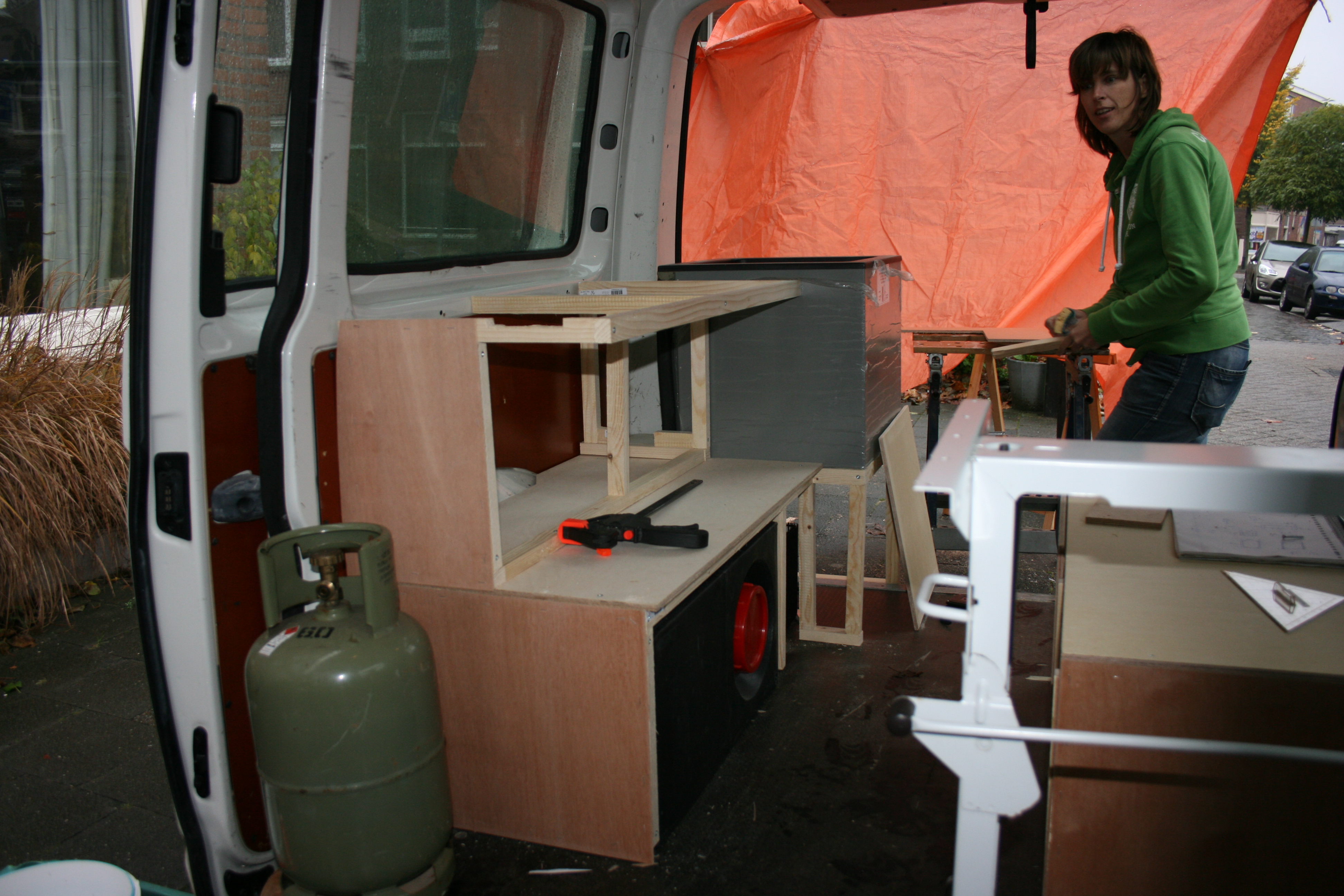 Zondag 28 oktober het onderframe gemaakt voor de keuken, het draagplankje voor de gasfles en de eerste rollende ladebodem in elkaar gezet. Dus weer een wel bestede dag.