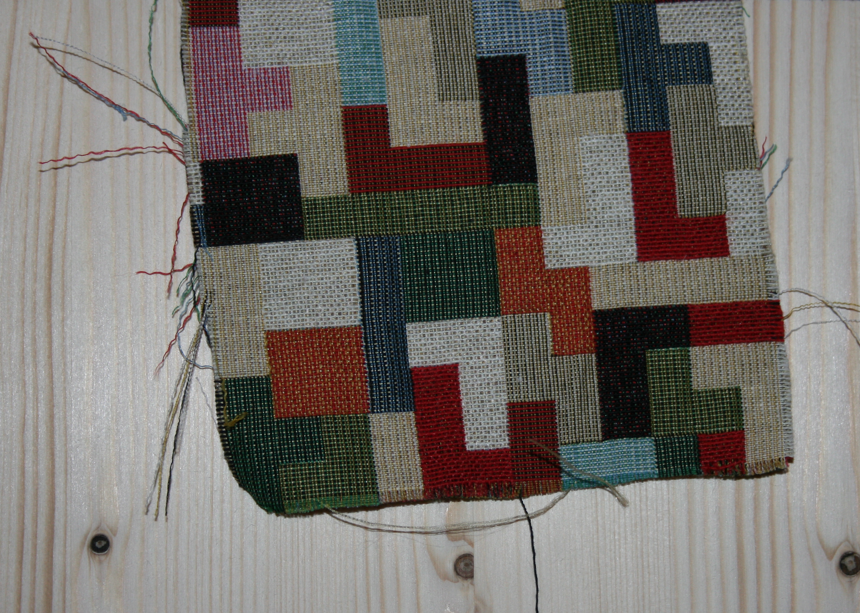 Het tafelblad en het aanrechtblad gaat vurehout worden. We hebben een mooie plaat hout bij de Praxis kunnen scoren: licht, maar wel met duidelijke nerven. Ook de stof voor de bank is gekozen. Vrolijk en met veel kleur: