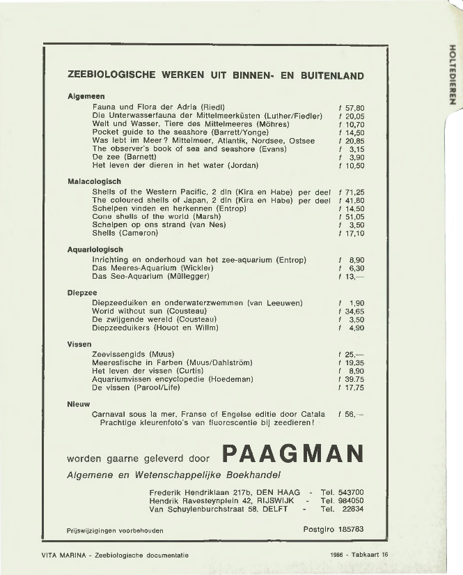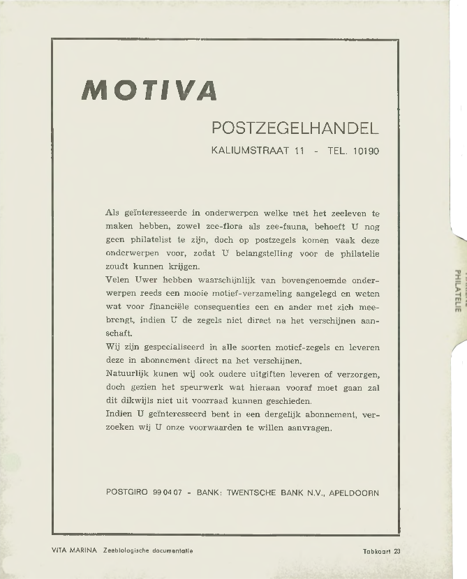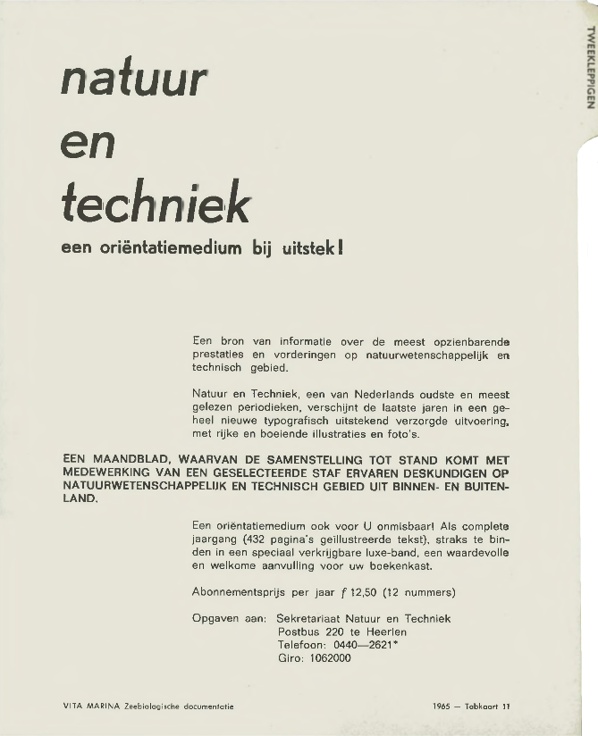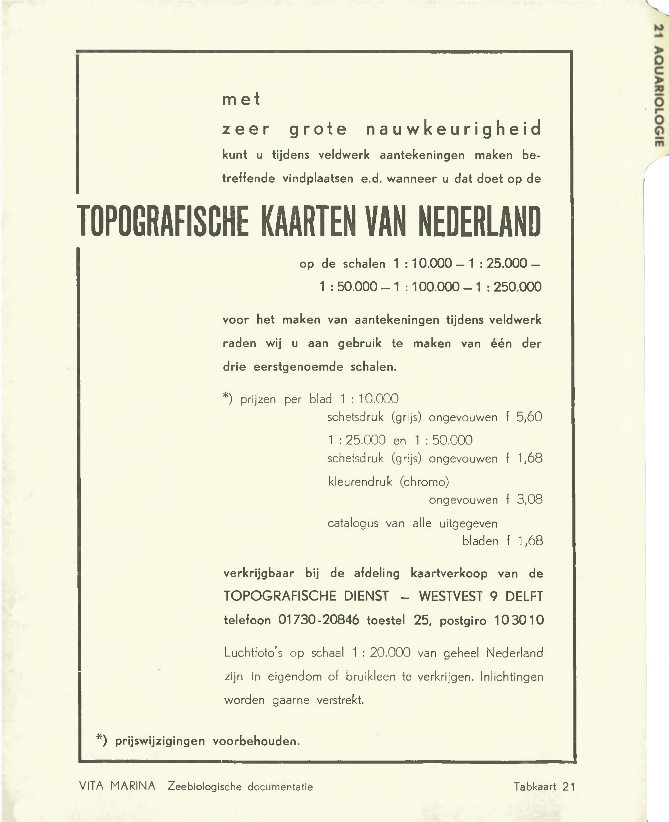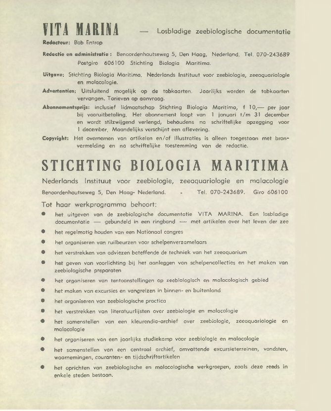 De Stichting Biologia Maritima heeft vanaf 1954 maandblad Vita Marina uitgegeven. Vanaf 1964 tot en met 1990 was de Vita Marina de "Zeebiologsche Documentie" die bestond uit een losbladig systeem. Met meer of mindere regelmaat kregen de abonnees een pakketje met multomapblaadjes toegezonden met daarin artikelen die toegevoegd konden worden aan de juiste plek in het systeem.