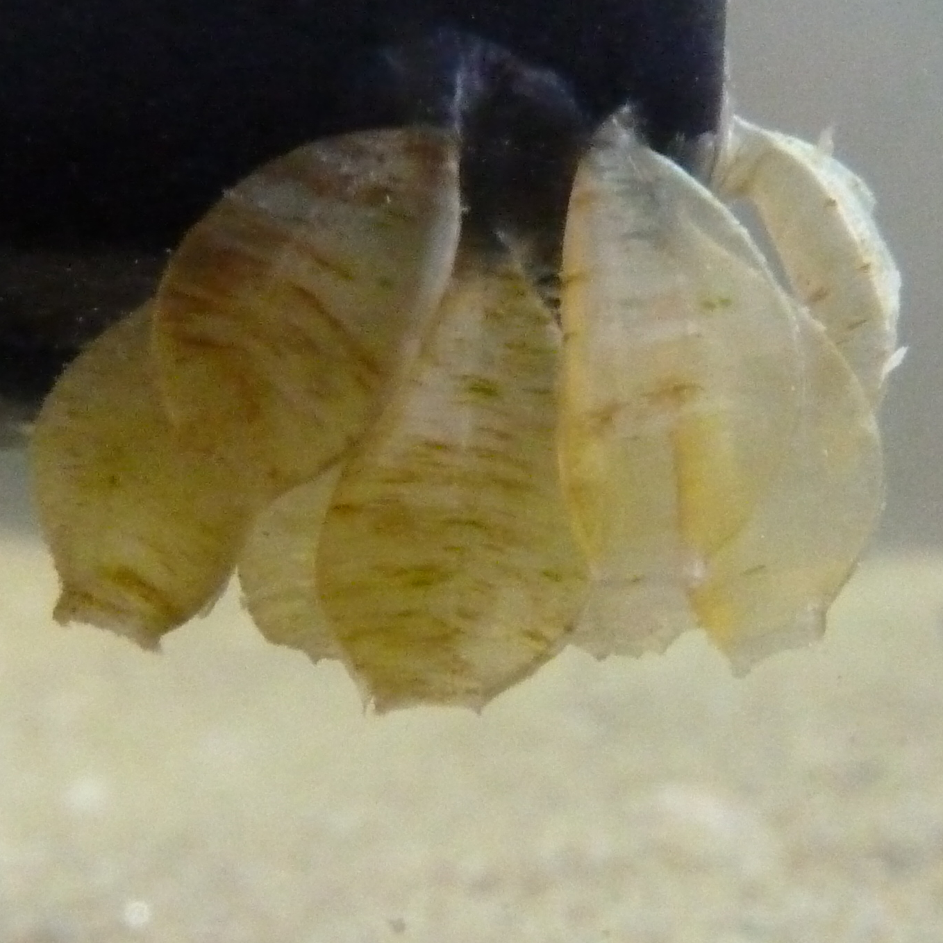 na 40 dagen zijn alle slakjes uit hun ei, ze zijn echter in het aquarium niet meer terug te vinden