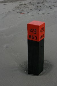 Op de fiets naar paal 48 en van daar weer wandelend naar paal 49 en terug (4). Dit is de overgang van wad naar noordzee, de meest opvallende vondst hier was een pelikaansvoet.