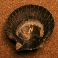 De zaterdag begon met regen. De planning was om naar De Hon en Het Oerd te gaan, maar dat hebben we snel omgegooid. Met de taxi naar Hollum om daar kunst te kijken was een beter idee. Tegen de middag klaarde het op en dus weer op weg naar het strand (5). Via de badweg het strand opgekomen bij ongeveer paal 49. Een mooi zandstrand. Dicht bij de eerste pier vonden we 5 penhorens vlak bij elkaar. Vlak voor de afgang van de vuurtoren, waar we bij het paviljoen wat zouden gaan eten, vond ik mijn eerste fragment van een noordkromp. Het idee was om lopend over het strand via de Noordzeekant terug te lopen naar Ballum. Verrassend was dat de vondsten veranderden na het paviljoen. Stukken met bijna alleen maar zaagjes, of bijna alleen maar gapers. Een weggeslagen stuk duin toonde een schelpenbank, hierin zat een gedoornde hartschelp. Kortom we gebruikten veel te veel tijd met schelpen zoeken en het werd echt snel donker. Dus voor de veilige weg gekozen en nabij paal 5 door de duinen terug naar Hollum.