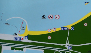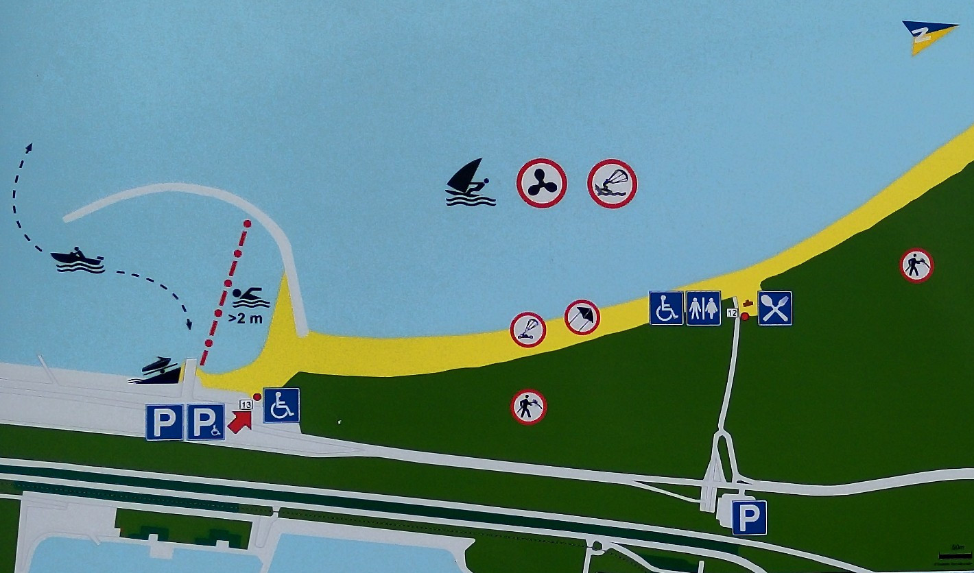 In het midden van de Brouwersdam bevindt zich aan de Noordzeekant een strand dat gebruikt wordt door kite-surfers. Dit is onderdeel van het natuurgebied de Voordelta.