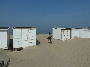 Anneke was zoet met het fotograferen van de strandhuisjes.