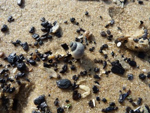 Vanaf het hotel liepen we zuidwaarts het strand op. Het was al een paar dagen oostenwind geweest, dus de verwachtingen waren hoog. Aan het einde van de dag zou het water pas op zijn laagst staan, dus besloten we de vloedlijn als eerste te doorzoeken. Het was in deze vloedlijn dat het ons opviel hoeveel tapijtschelpen (Venerupis senegalensis) en zaagjes (Donax vittatus) er waren, vooral veel doubletten. Ook landsoorten als de Stompe moerasslak (Viviparus viviparus) en de Slanke duinhoren (Cochlicella acuta) lagen er in redelijke aantallen. De leukste vondsten waren koffieboontjes (Triva sp.), dar die op onze Nederlandse stranden zeldzaam zijn.