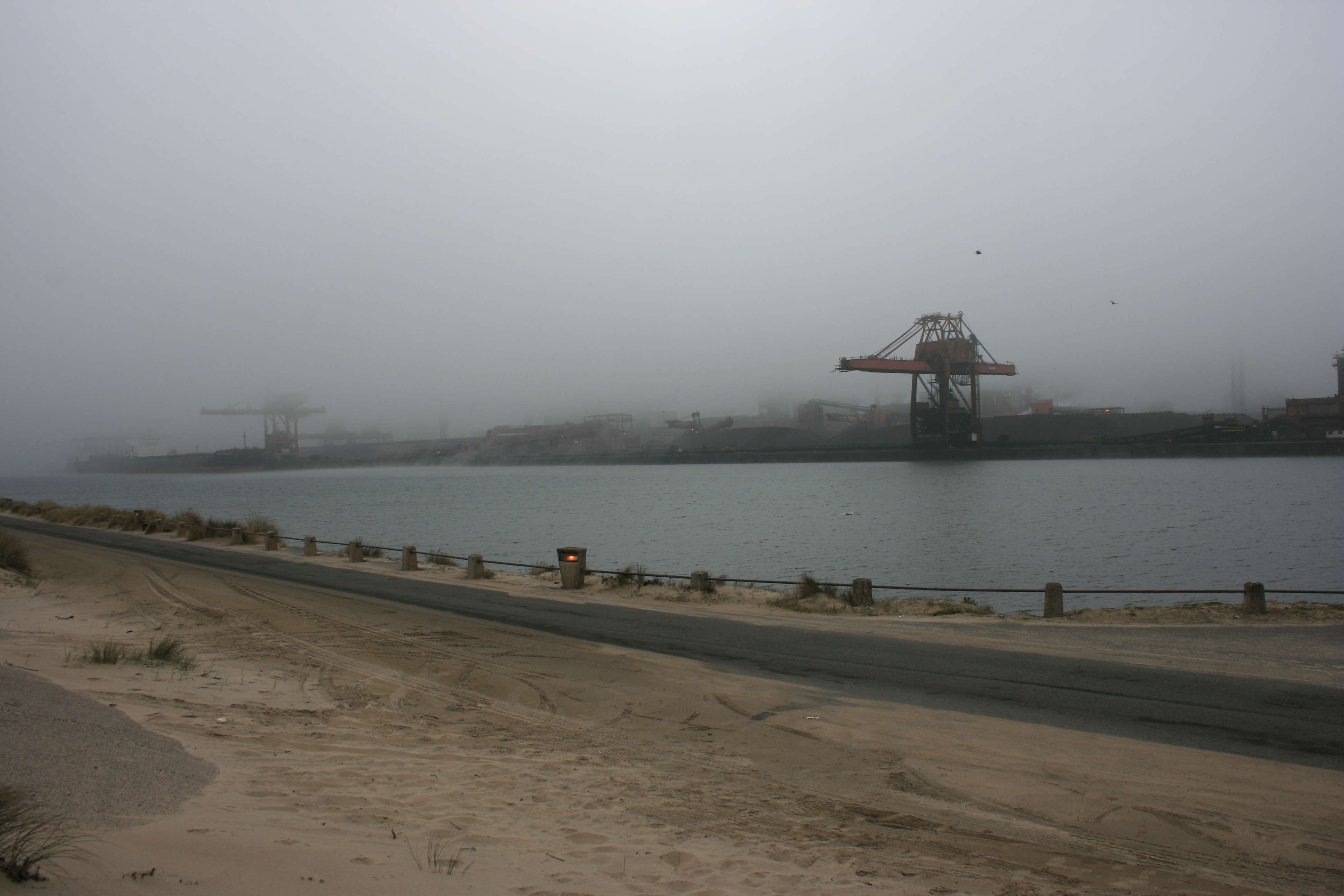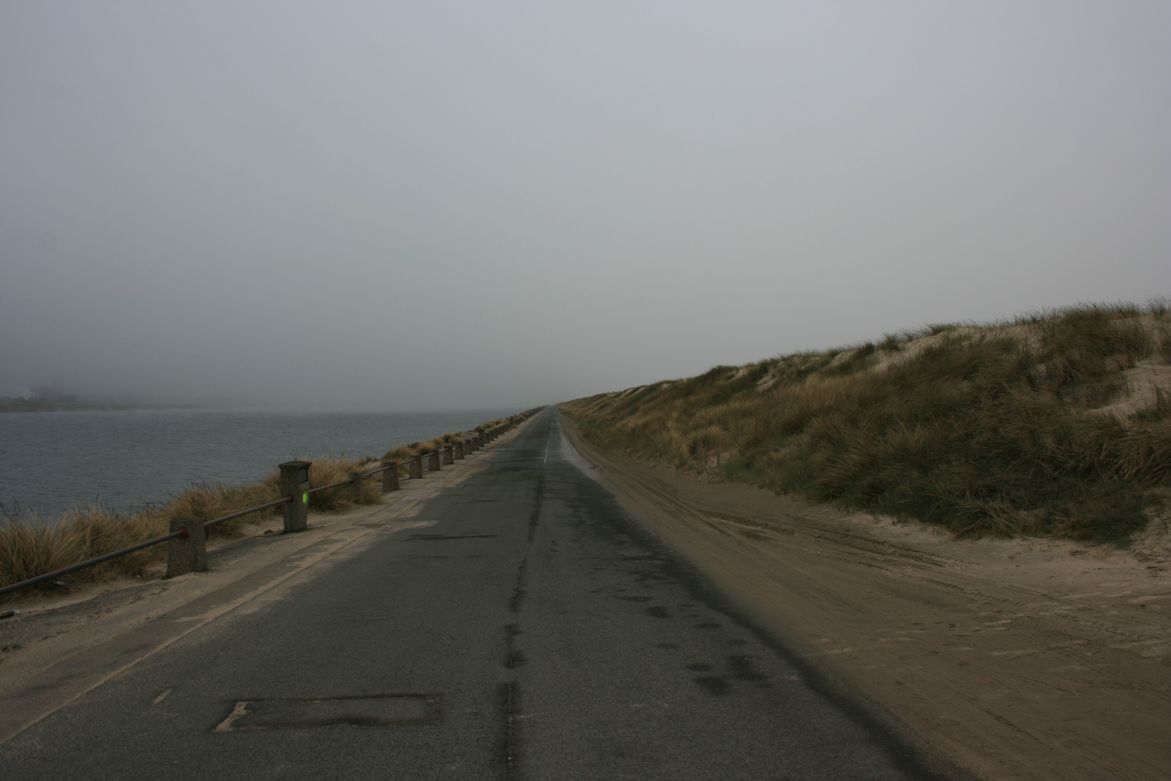 Op 25 maart 2012 hebben we een bezoek gebracht aan Dunkirk vanaf Gravelines. Vanaf Gravelines volgden we de Route des Dunes en Route de Mardyck, wat bij mooi weer vast een prachtige route had kunnen zijn, maar wij hadden enorme mist en een grauwe dag. Het eerste doel was de Dig du Braeck. De mist was inmiddels zo dik geworden dat we de overkant van het kanaal niet konden zien. Dit is aan de zuidkant van Dunkirk.