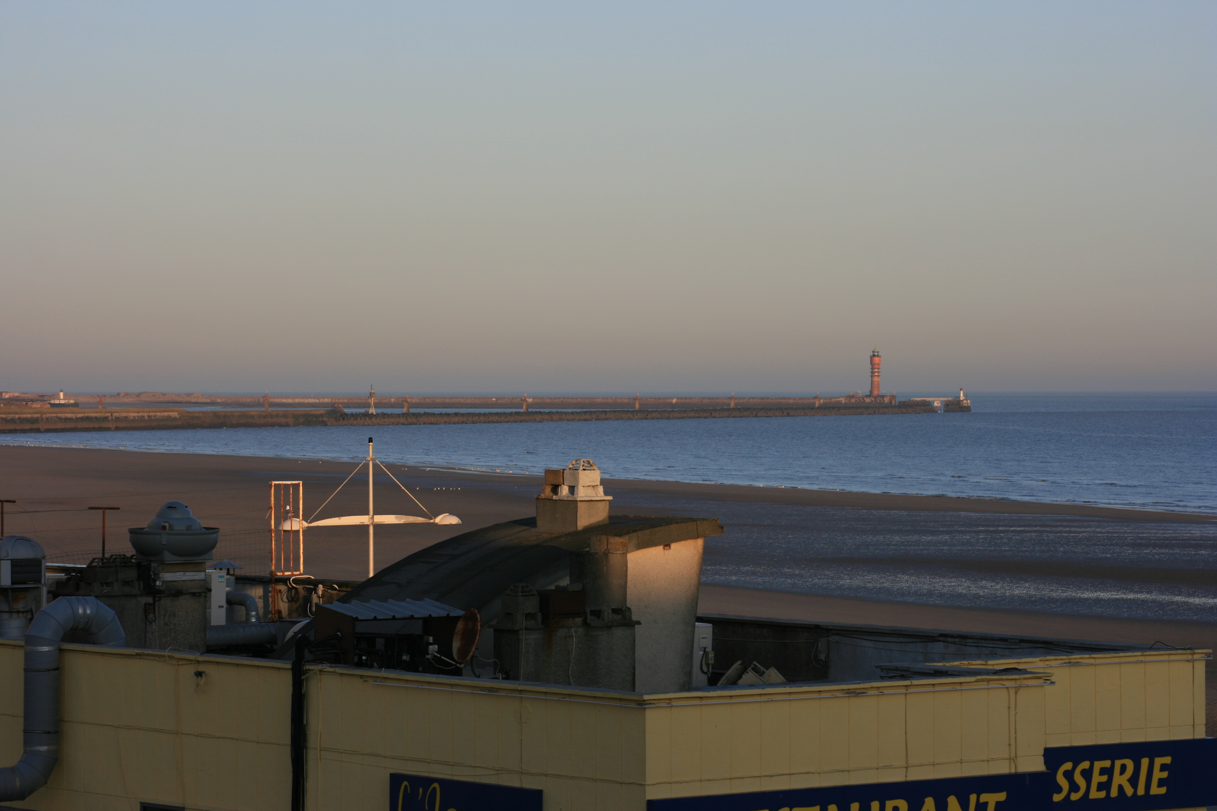 Aan het einde van de dijk, zijn we via de vuurtoren van Dunkerque naar het historische strand van deze stad gereden alwaar we een hotel hebben opgezocht.