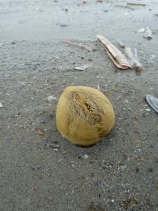 Vlak voor het weggaan vanaf het balkon van ons hotel nog even een foto gemaakt van het stuk strand dat zo rijk was in zijn vondsten.