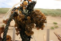 Veel van onze vondsten zijn gedaan op het Egmondse strand of precieser tussen paal 39.000 en 43.000, dat is het strand tussen Egmond aan Zee en Castricum. Standaard ligt er op het strand fossiele halfgeknotte strandschelpen en sinds de jaren 199x ook de Amerikaanse zwaardschede. Veel voorkomende schelpen zijn de Venusschelp, Witte dunschaal, Zaagje, de Kokkel vooral oude kleppen en de Wenteltrap. Van nature groeit er op een zandstrand geen wier, maar het spoelt wel regelmatig aan. Vooral aan het eind van augustus / begin september spoelt er bij een noordwestelijke krachtige wind elk jaar veel riemwier aan.