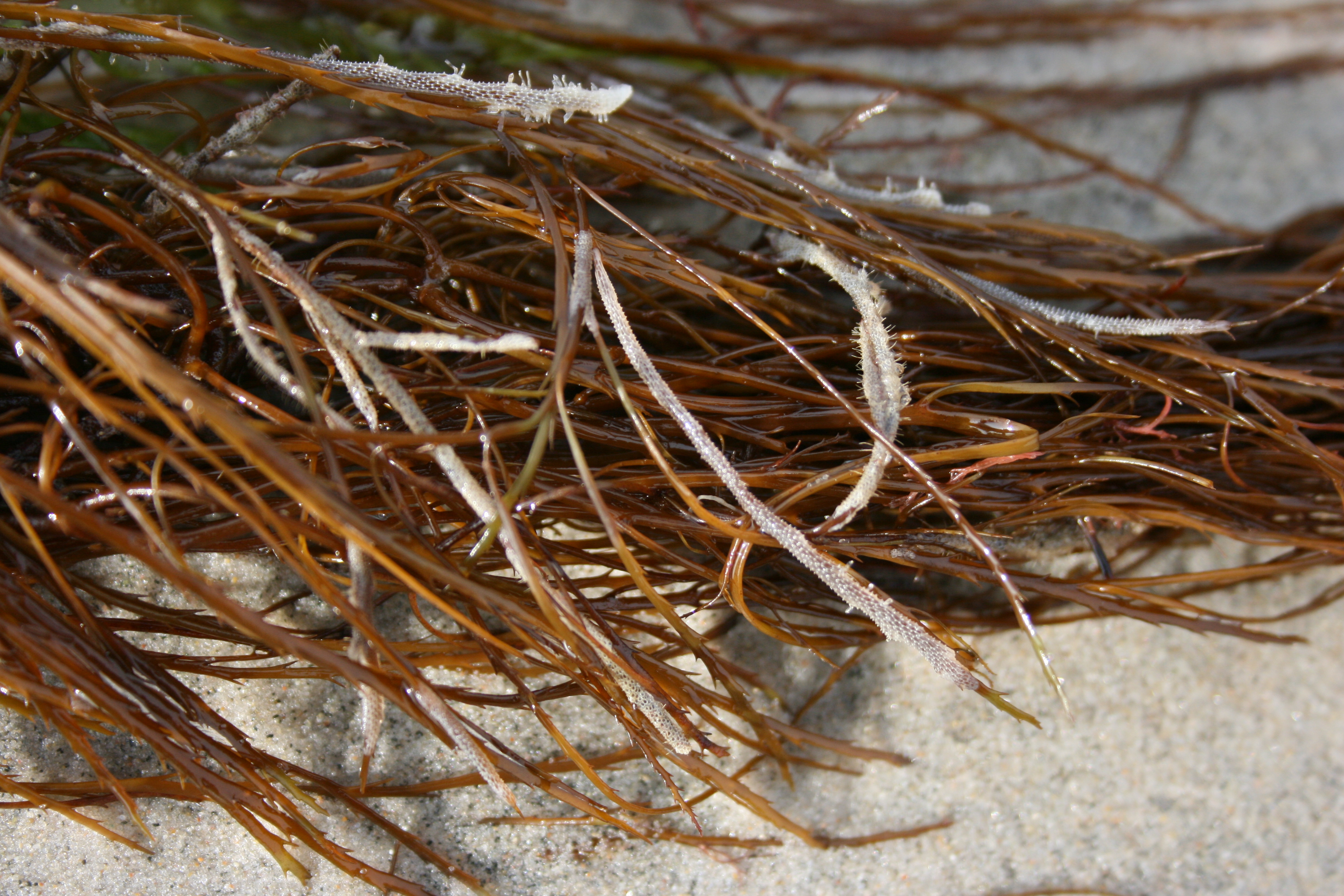 Het het strand van de Oostzee veel dezelfde vondsten als bij de camping, alleen in andere verhoudingen. Hier lagen meer Penhorens en minder Pelikaansvoeten. Tevens vond we twee Paardenmossels en Anneke vond een Geplooide zonneschelp. Ook hier vonden we weer veel veterwier en zeegras. Het totaal meegenomen aantal vondsten is: