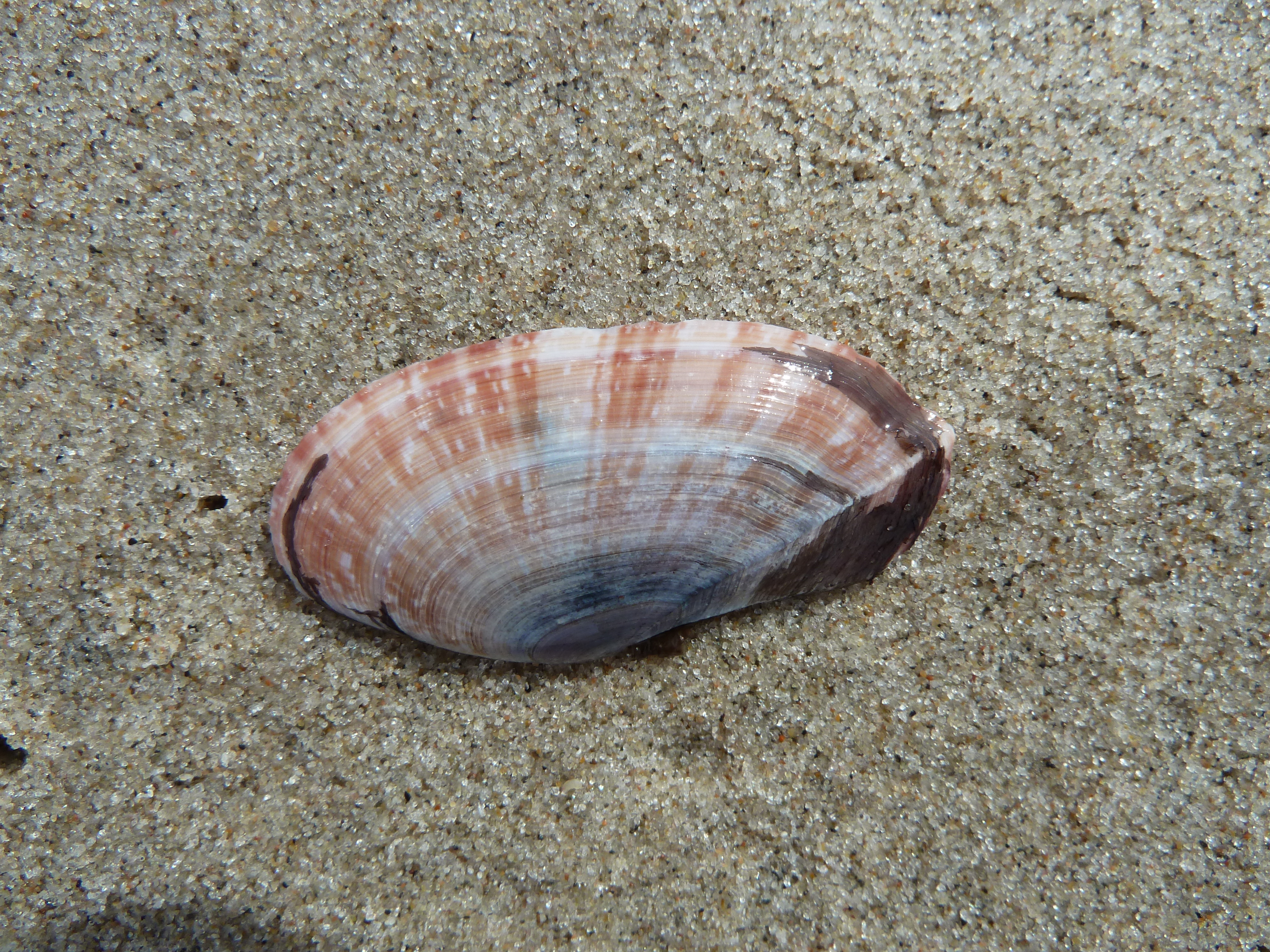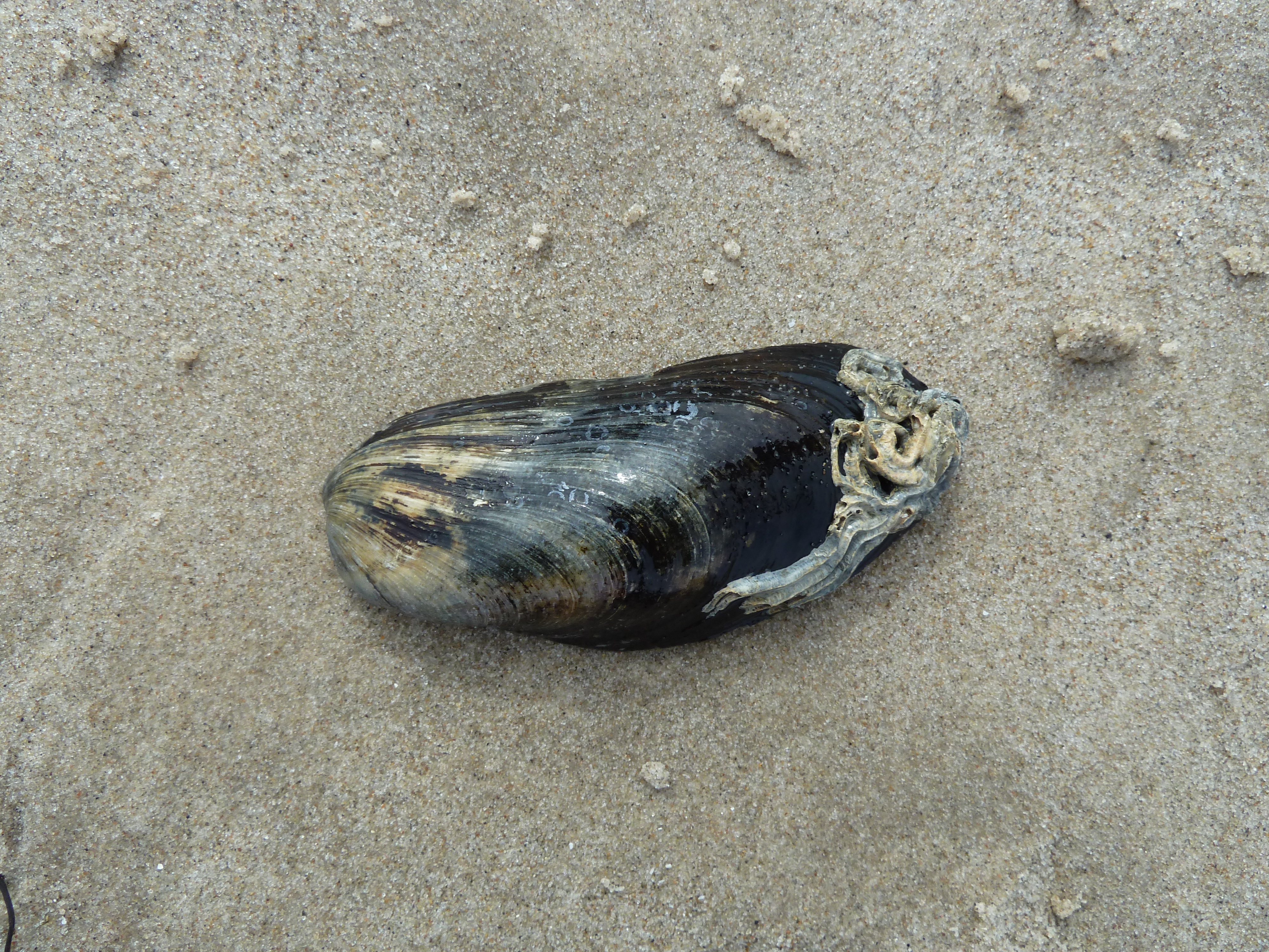Wij vervolgden onze weg langs het strand van het Skagerak. Er was een onmiddelijke verandering van schelpenfauna. Na de bocht vonden we alleen nog maar het Groot tafelmesheft, waarvan we twee mooie exemplaren hebben meegenomen.