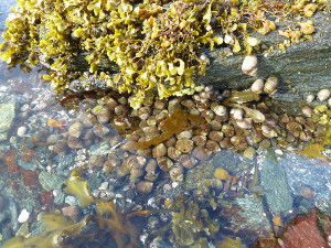 Gelukkig was het bij aankomst laagwater zodat we wat stukken droogvallend rotsgebied hebben kunnen bekijken. We hebben maar een klein stukje van de kust gezien. De vondsten bestonden uit: