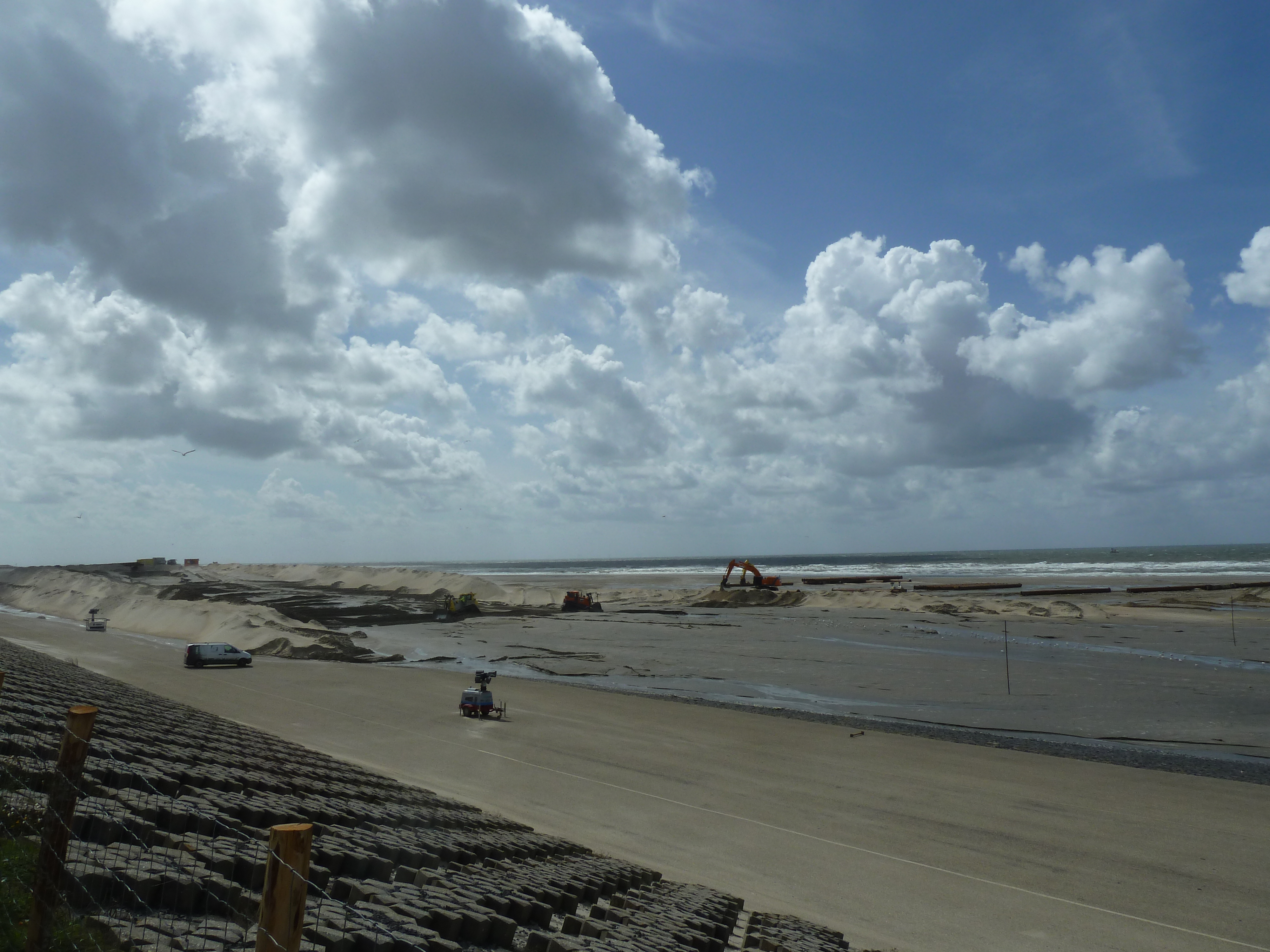 In 2014 is er onder de noemer 'Kust op Kracht' begonnen aan een project om het achterland verder te beveiligen door het opspuiten van ruim 35 miljoen m3 zand om daarmee een strand en een kunstmatig duin te creëeren. De kustlijn is daarbij 300 meter zeewaards verplaatst. Dit project moesten we natuurlijk met eigen ogen zien en dus brachten we op 12 augustus 2014 een bezoek aan de Hondsbossche zeewering om te zien de dijk langzaam verdween onder een enorme berg met zand.