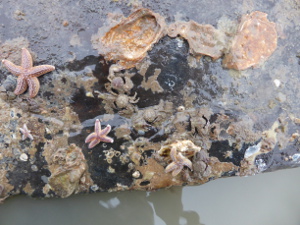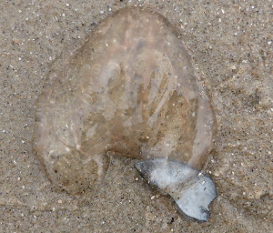 Op het strand lagen vooral heel veel roodbruin verkleurde schelpen. Verse exemplaren lagen er van de Kokkel, het Nonnetje, de Amerikaanse boormossel, de Alikruik, het Zaagje, de Wenteltrap en de Amerikaanse zwaardschede.