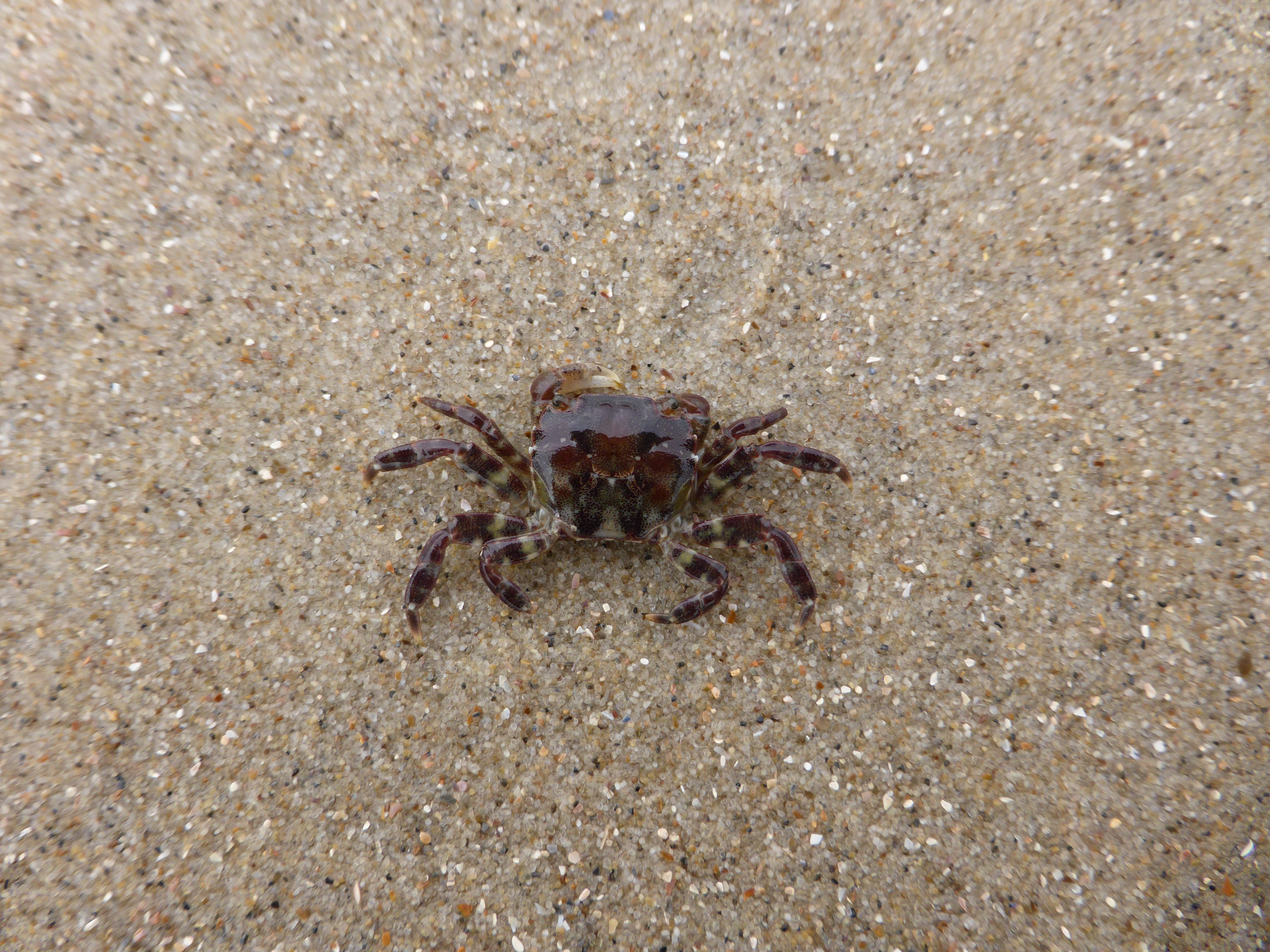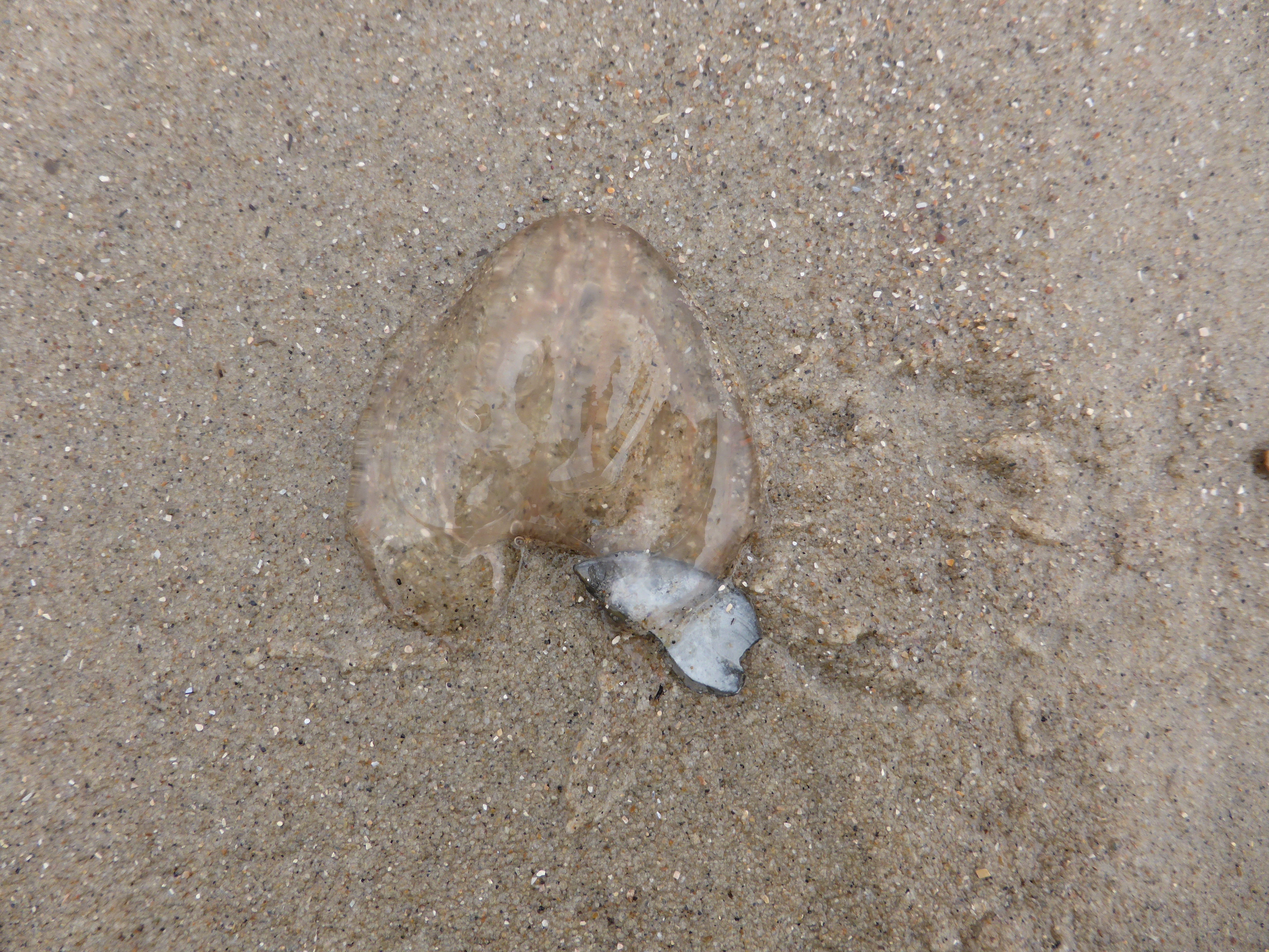 Aan de bijna eblijn vond ik een aantal Amerikaanse ribkwallen en een klein ingegraven krabbetje.
