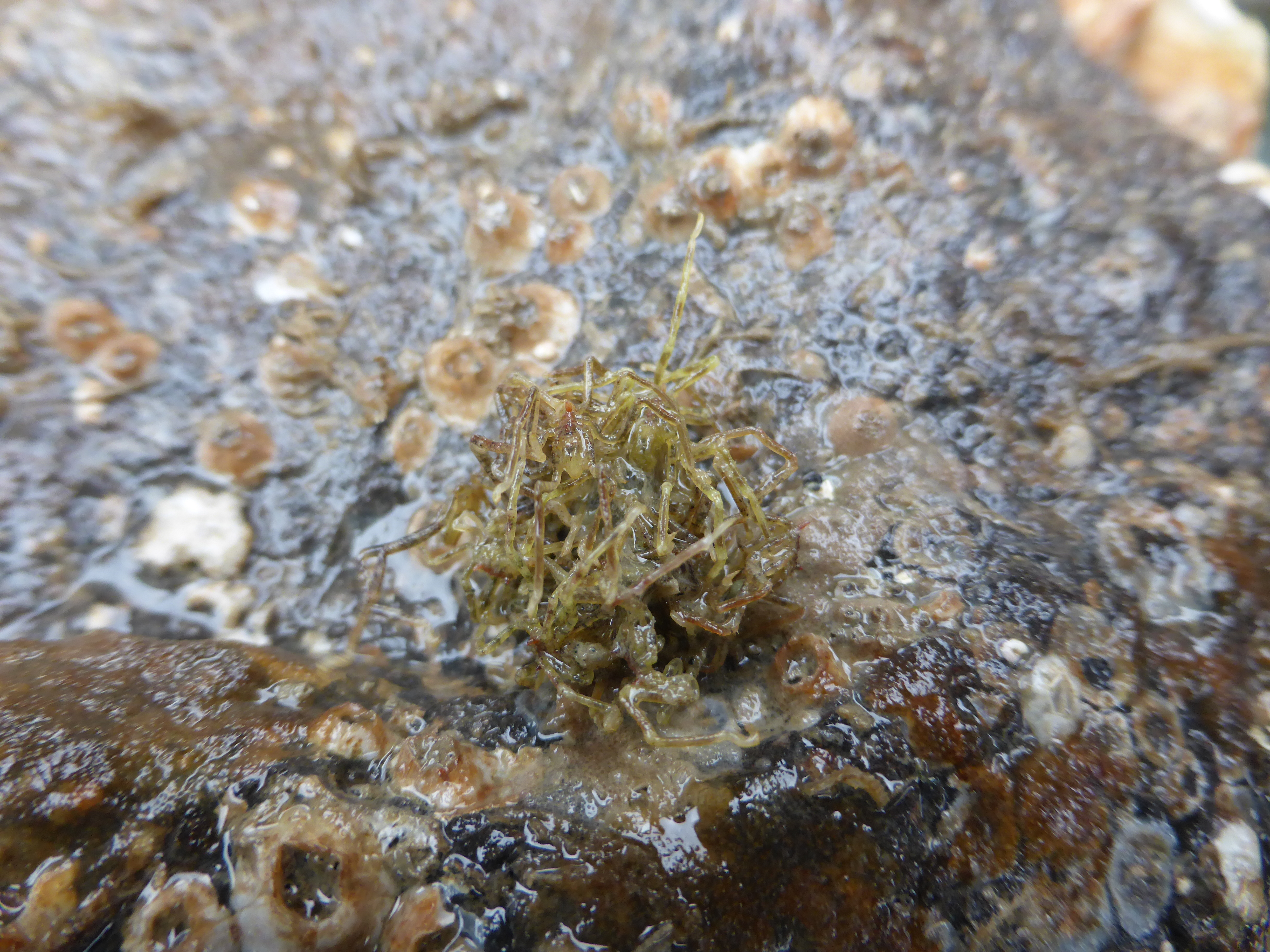 Naast de Zeeeiken en het Japansbessenwier, troffen we ook Wakame aan die al zichtbaar waren terwijl wij keken naar het zakkende water.