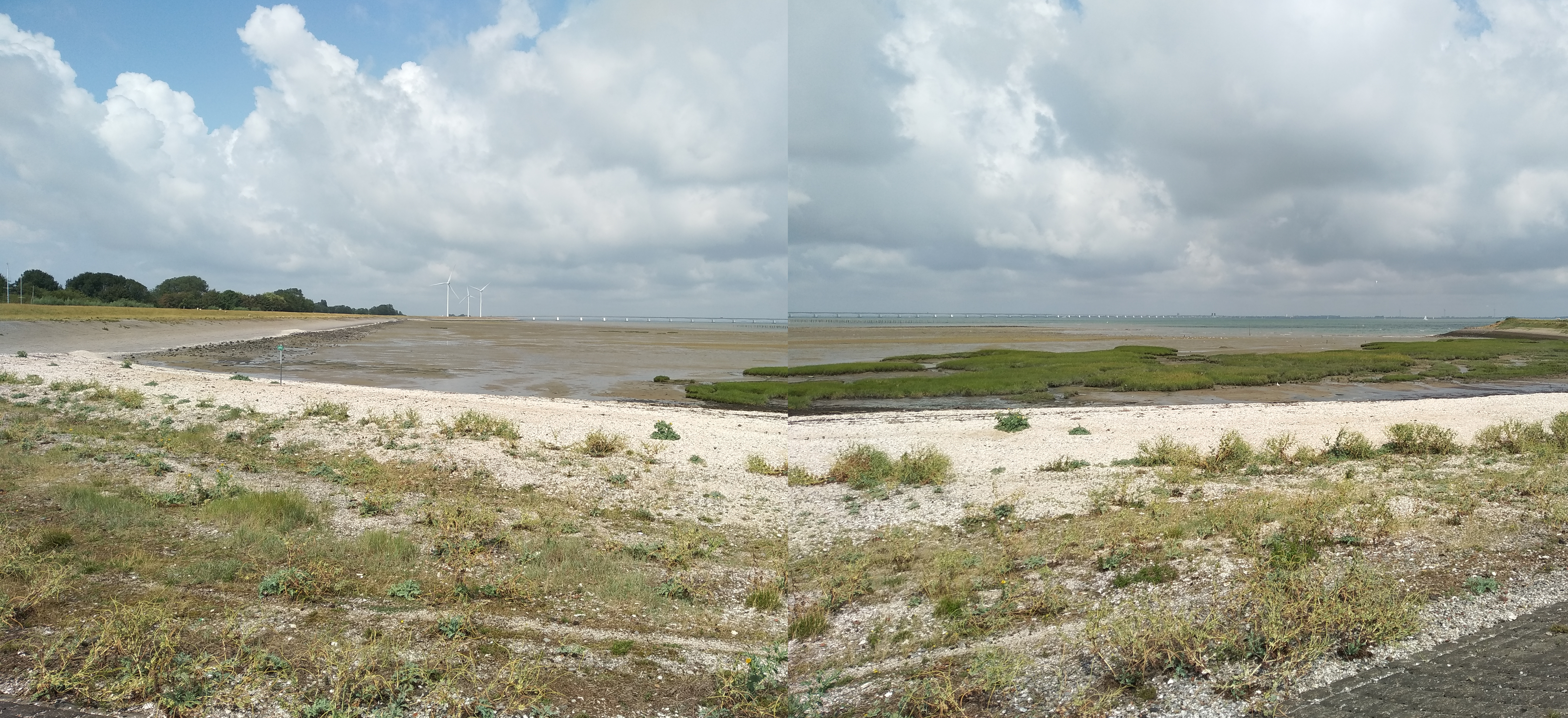 Aan het einde van de Veerhavenweg ligt een parkeerterrein met een besloten gebied waar een dikke laag schelpen aanwezig is met vooral heel veel kokkels. Bijzondere vondsten hebben we er niet gedaan.