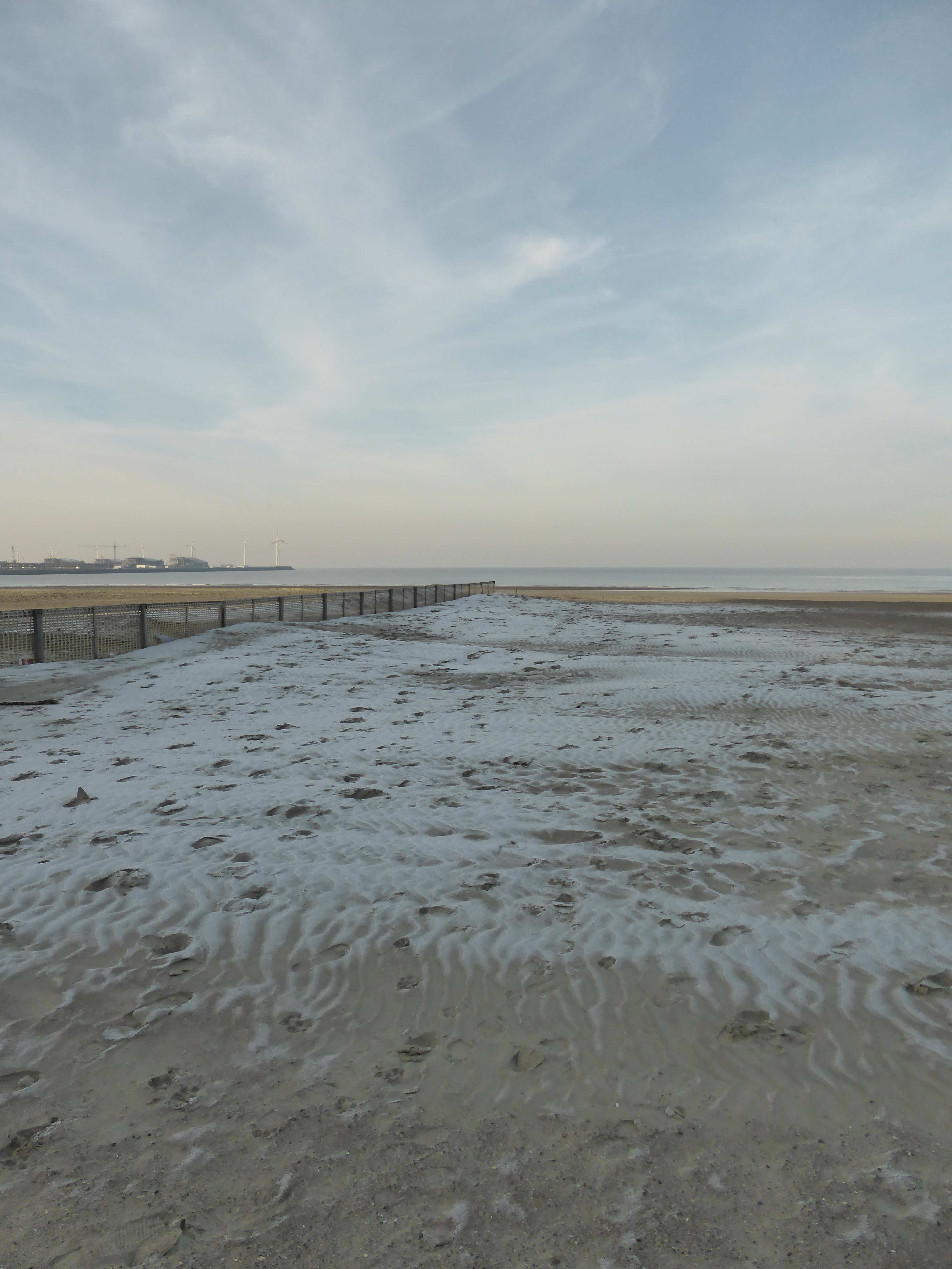 Hier volgt het verslag van 5 december. Ik kwam rond 11:20 aan op het Vissershulde plein in Heist. Vanaf de strandafgang ben ik eerst via de vloedlijn richting de haven gelopen, tot daar waar het afgezet is. Daarna via eblijn naar het noorden. Ik zou het strand graag in drie stukken willen opdelen: