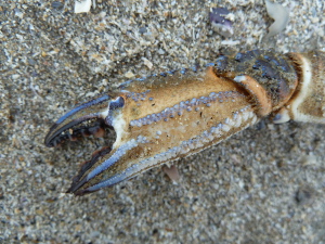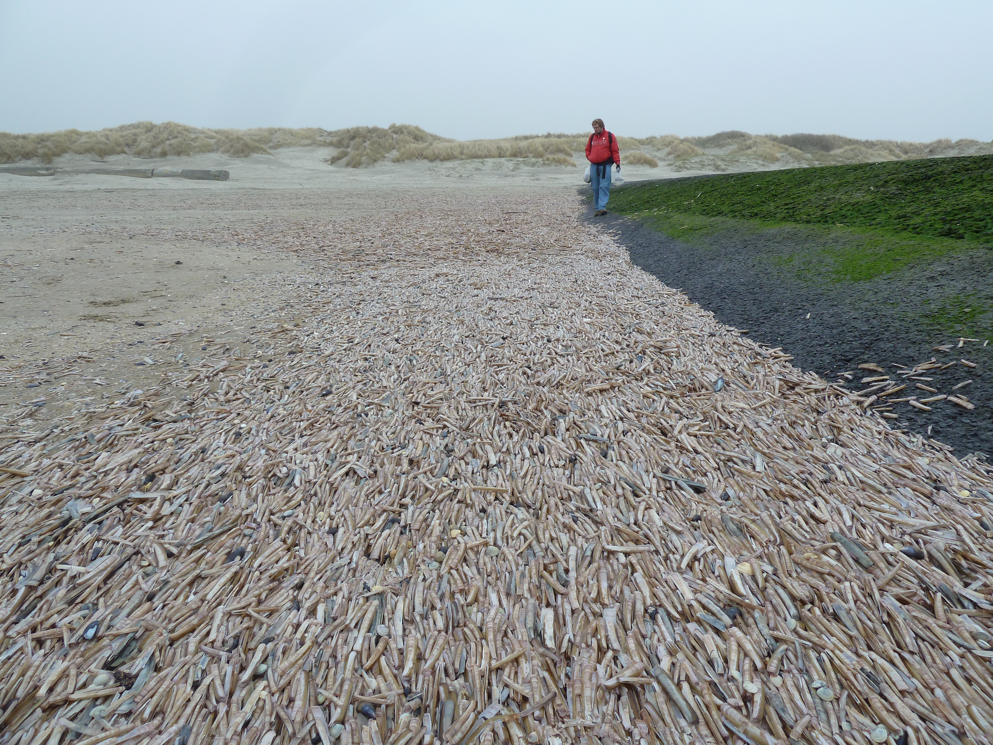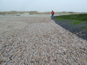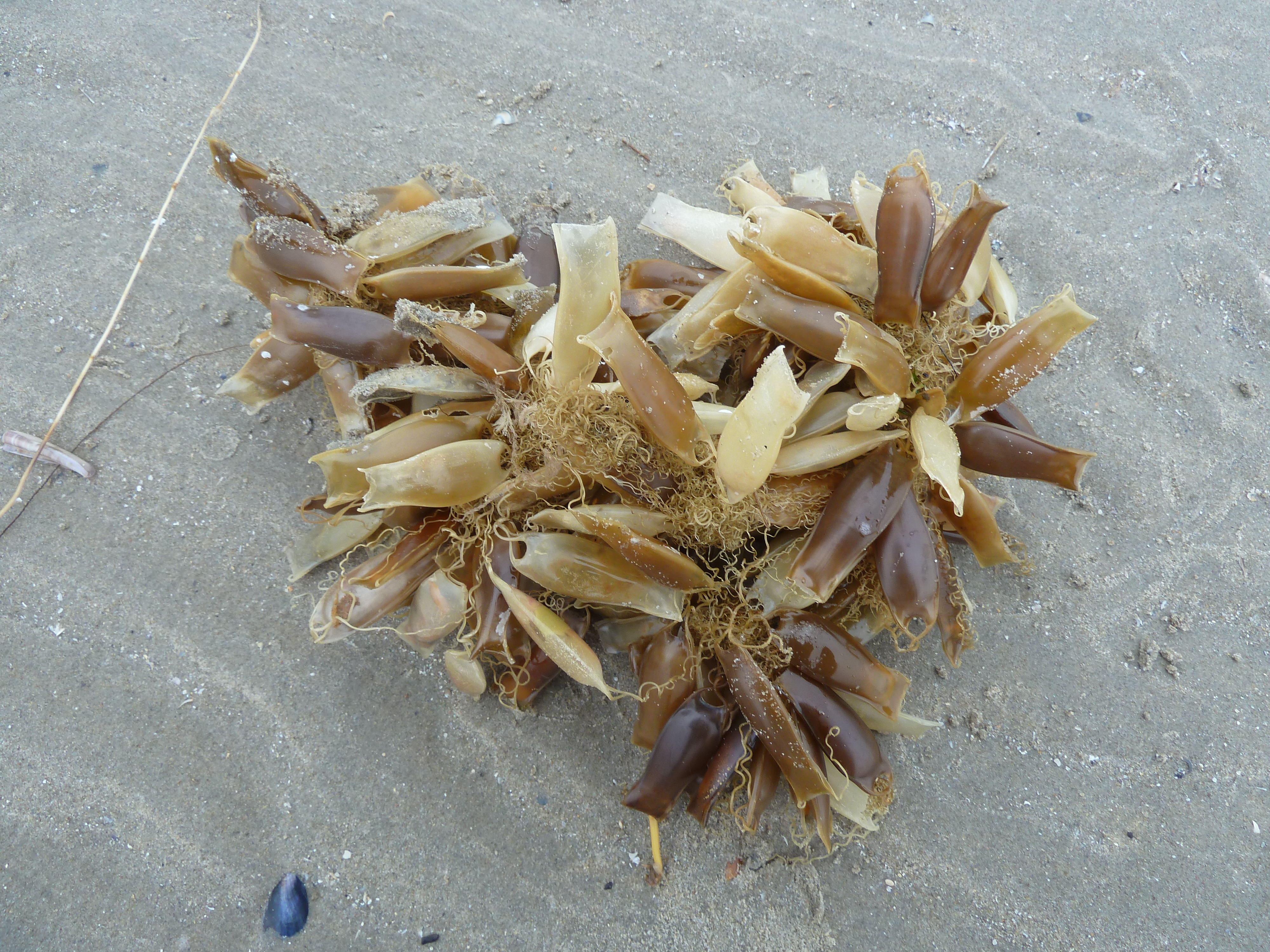 Het was een grijze koude dag, dus niet heel erg fotogeniek. De meeste bijzondere vondsten deden vrij vrijwel meteen toen we het strand op kwamen. Het was een bos met 200 haaieneieren.