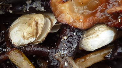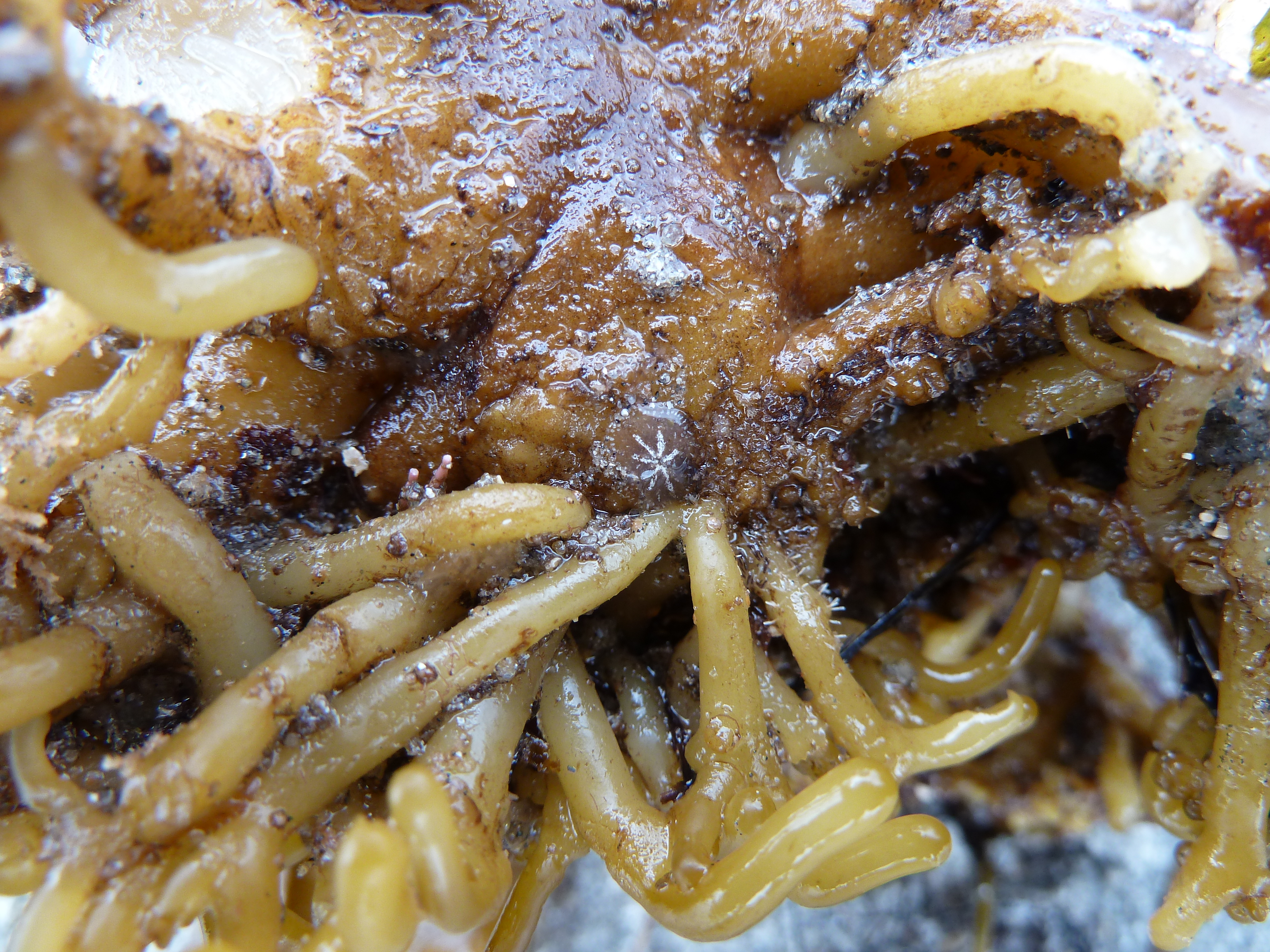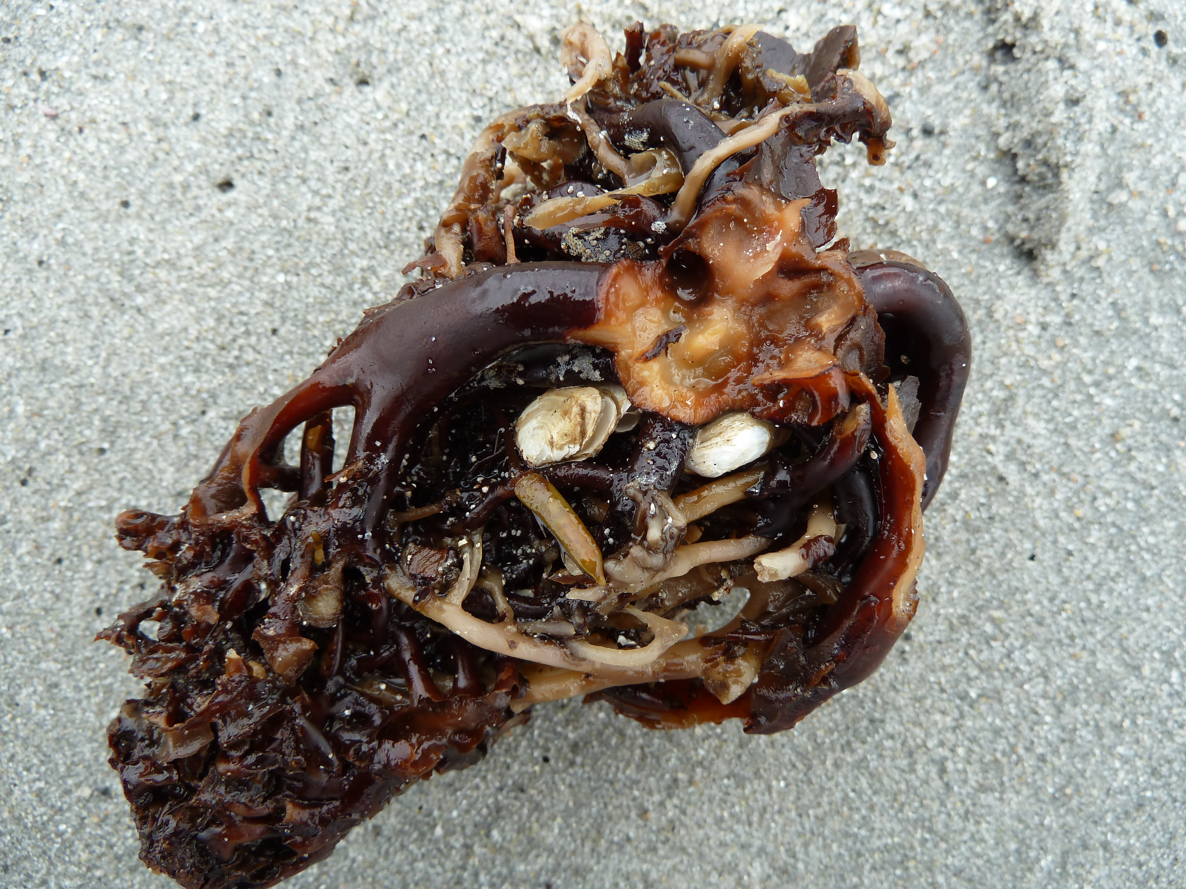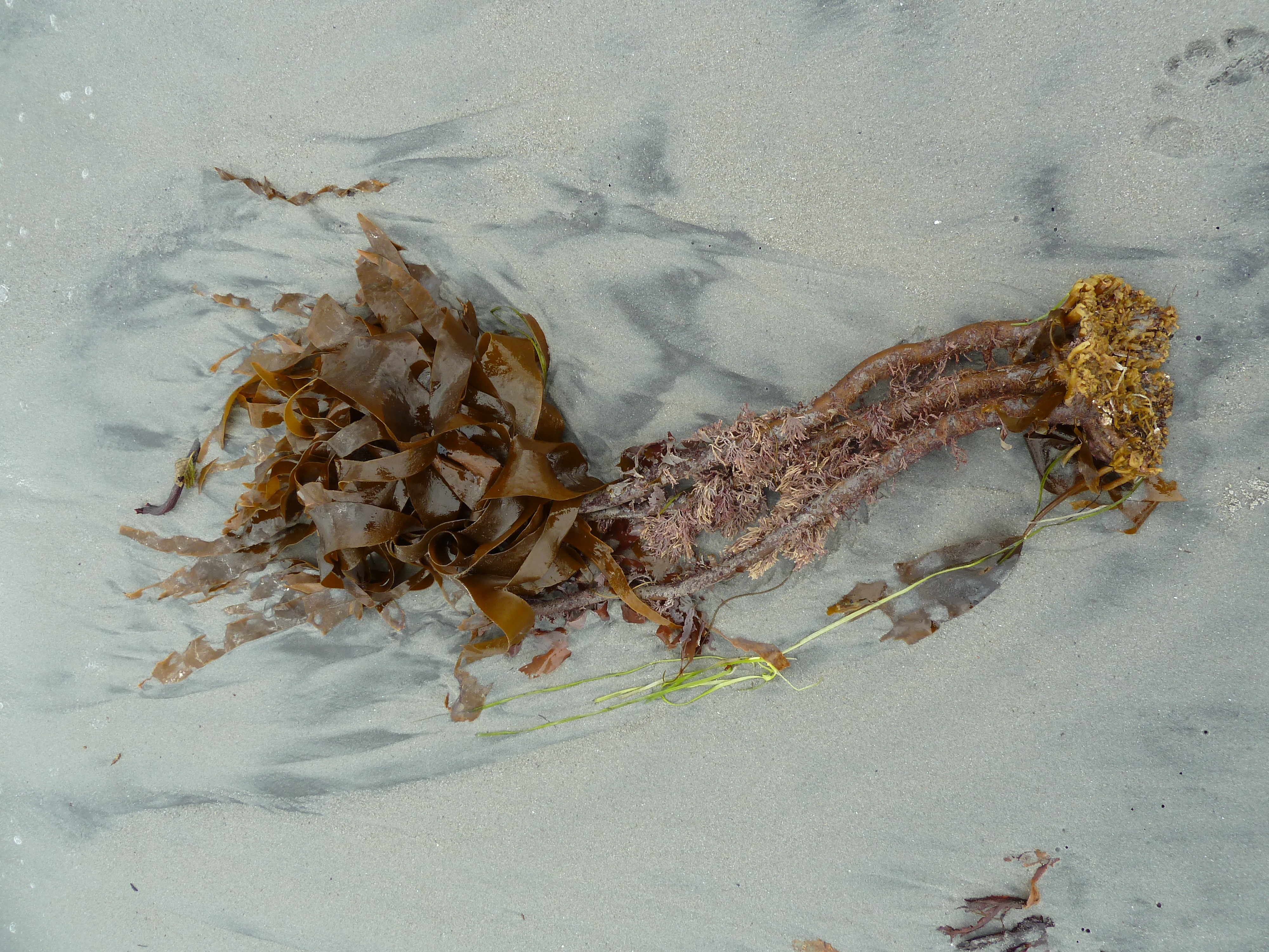 Veel soorten wieren. Op de Lamelaria sp. wieren zitten vele schelpen.