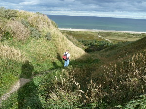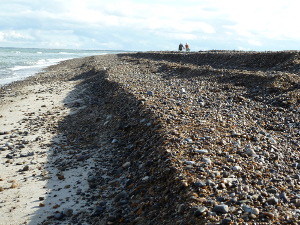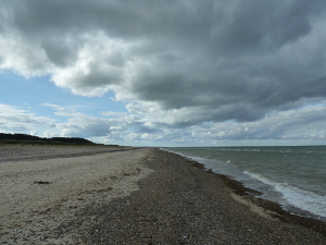 Het strand tussen Svinklov en Slettenstrand bestaat voornamelijk uit grind wat zwaar lopen is en moeilijk zoeken is naar aanspoelsels.