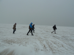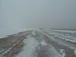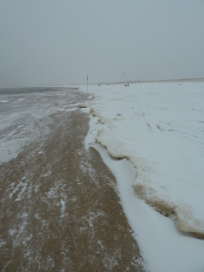 Er zijn weleens van die momenten dat je denkt dit is zinloos, maar wel gezellig. Zo'n moment was 20 januari 2013 met een excursie van de SWG naar de zandmotor. Er stond een harde (windkracht 6) Noordoostelijke wind, wat een gevoelstemperatuur opleverde van -15°C, en er lag veel sneeuw. Er was dus weinig te vinden. Wat wel opmerkelijk was was de duidelijk "wadachtige" vondsten aan de randen van het zwin: